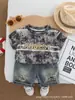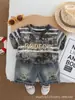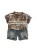 Camiseta de Verão de Manga Curta para Meninos Conjunto de Shorts Jeans Rasgados Roupas Infantis 2025 Novo Verão Infantil Roupas Infantis