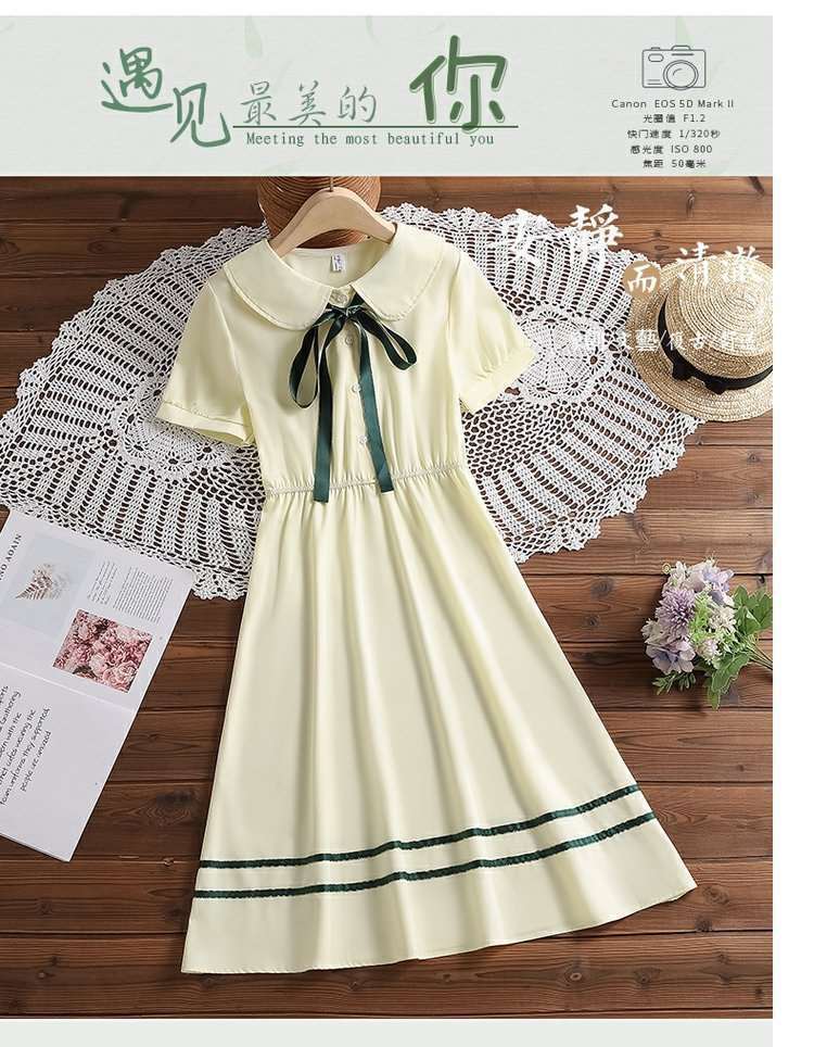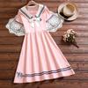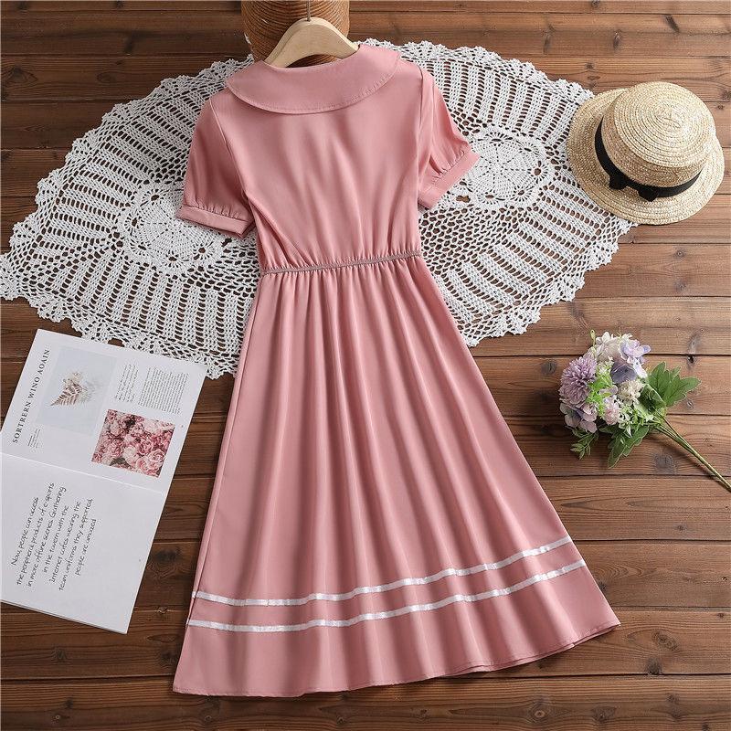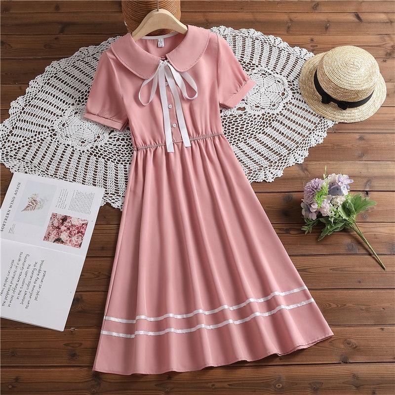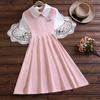 Pink doll collar princess dress 7116, Apricot doll collar princess dress 7116, Blue shirt collar college skirt...