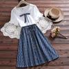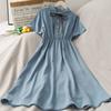 Blue shirt collar college skirt 7081