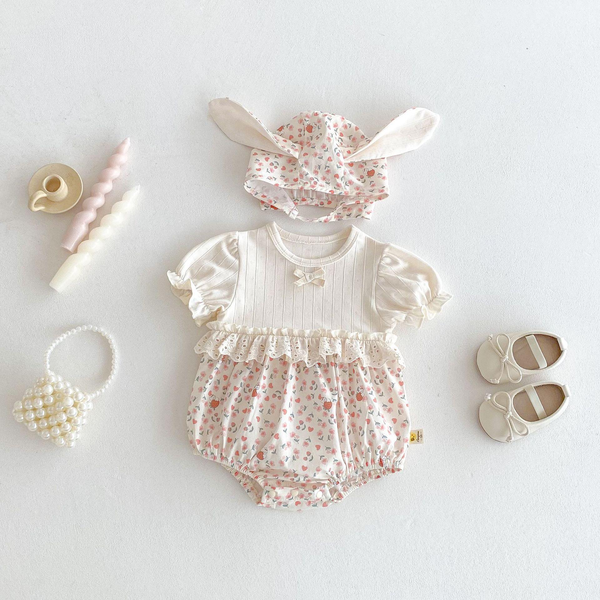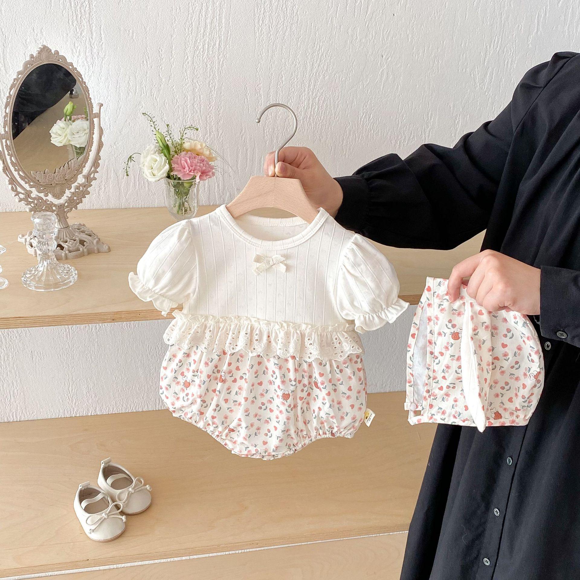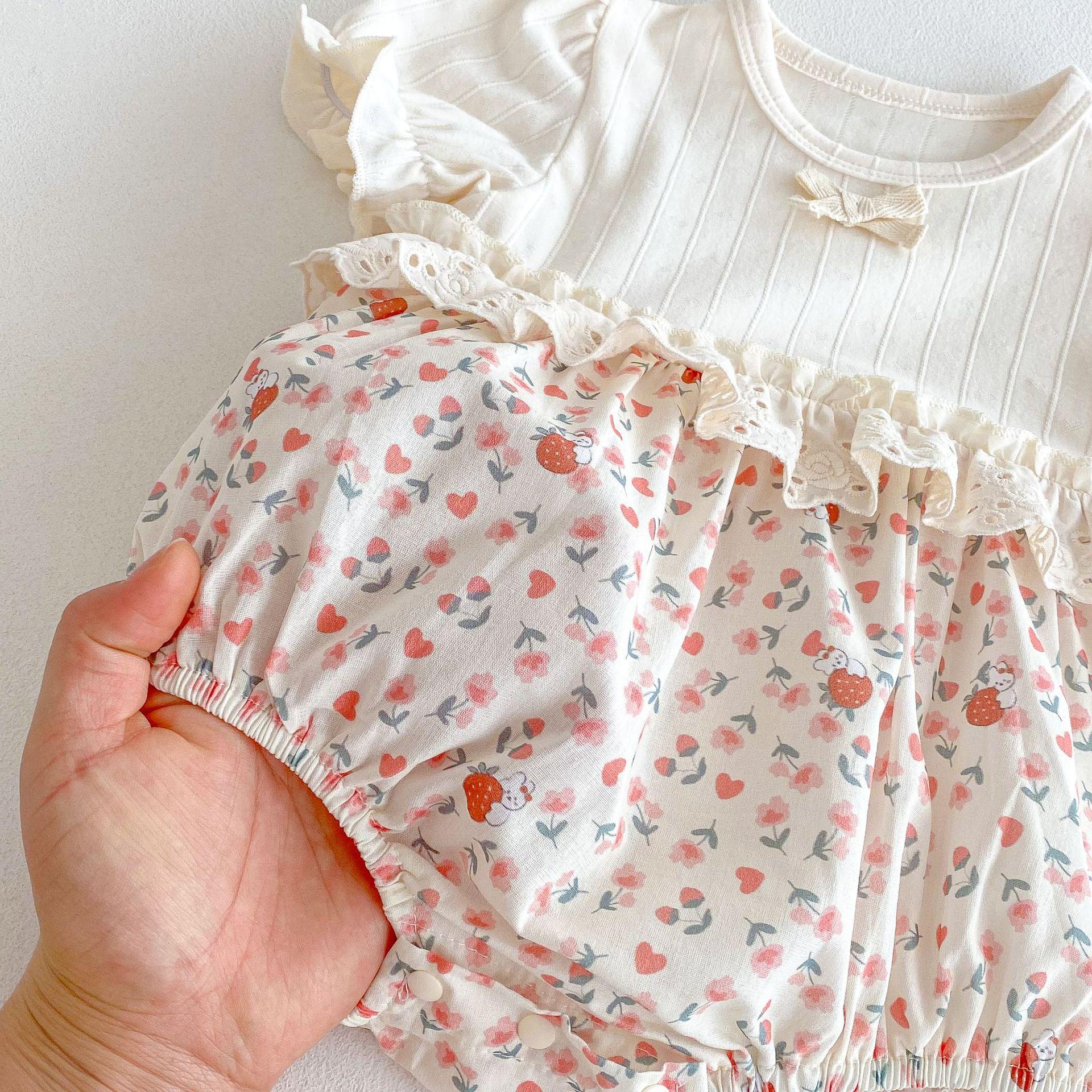 Roupinhas de Verão Finas de Uma Peça para Bebê Menina Doce Lua Cheia Cem Dias Ha Roupas Roupas de Bebê Fofas Florais Saco Roupas de Pum