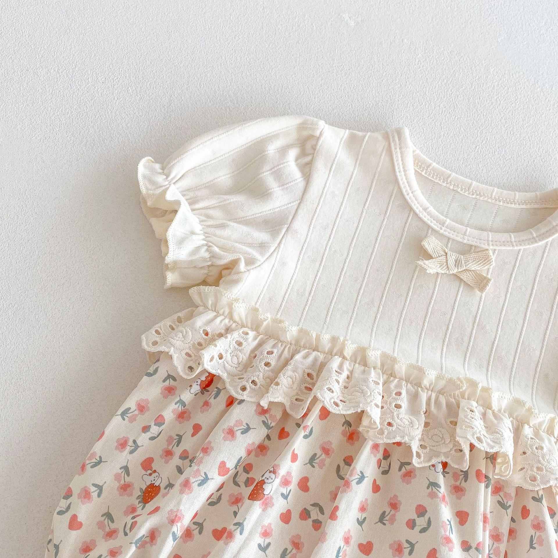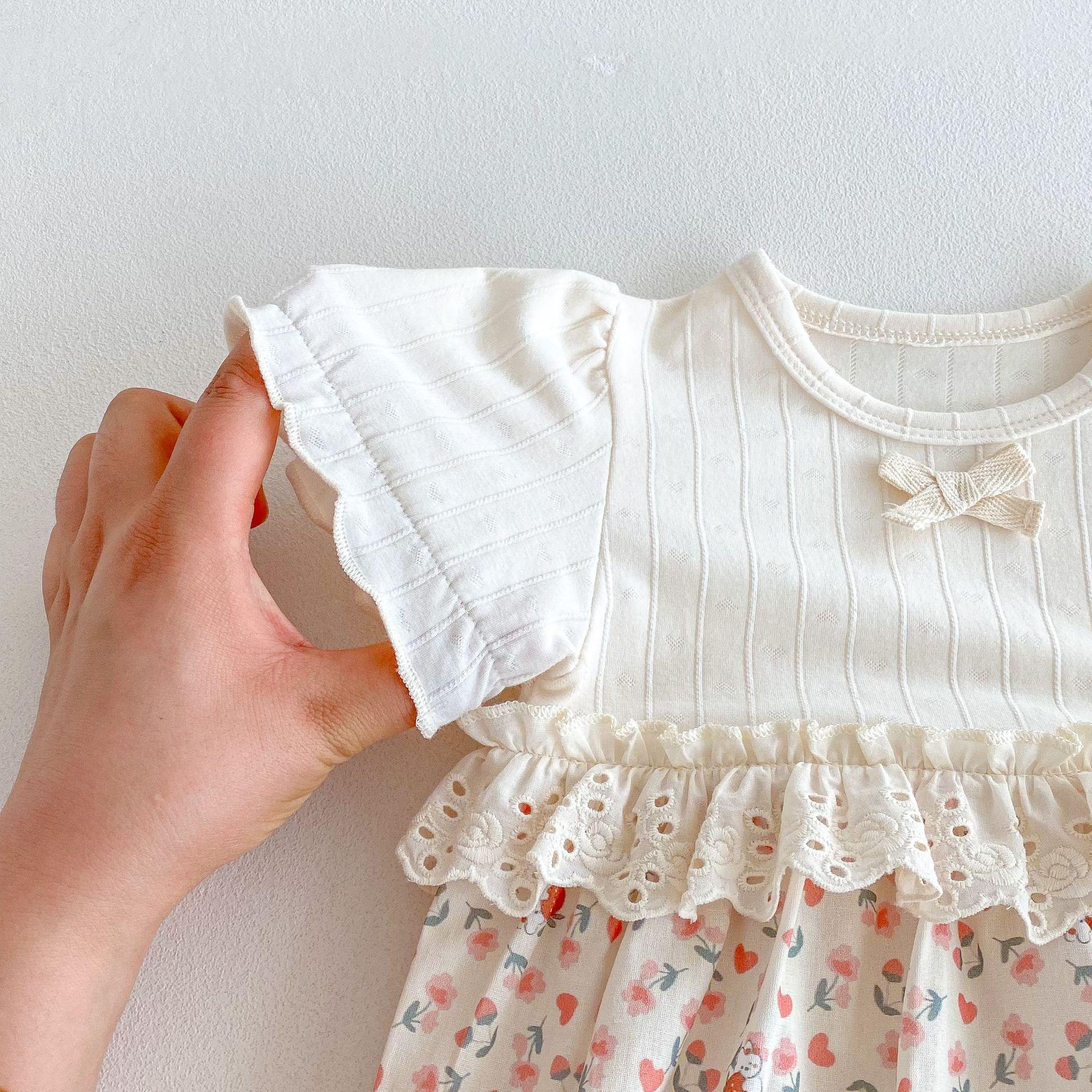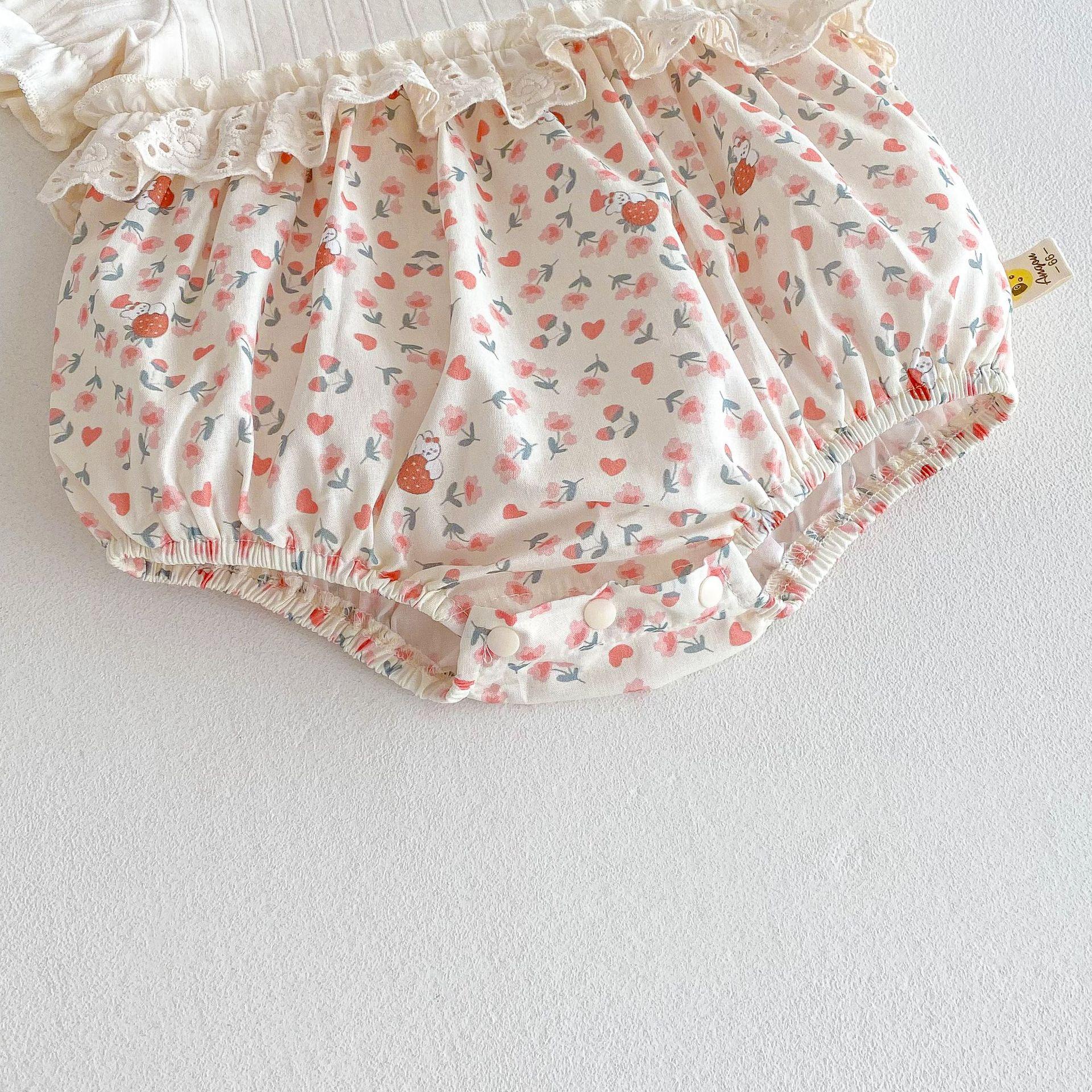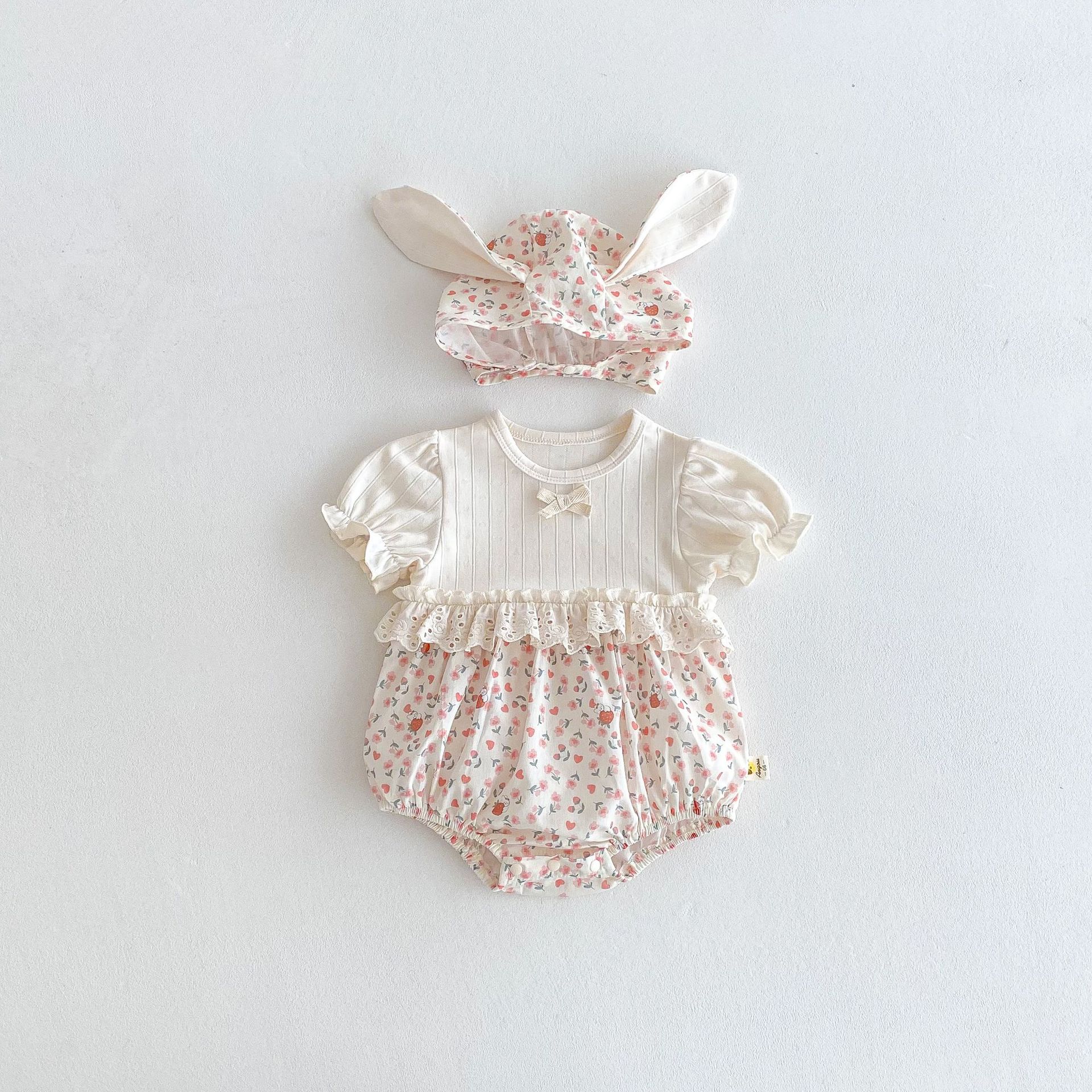 Roupinhas de Verão Finas de Uma Peça para Bebê Menina Doce Lua Cheia Cem Dias Ha Roupas Roupas de Bebê Fofas Florais Saco Roupas de Pum
