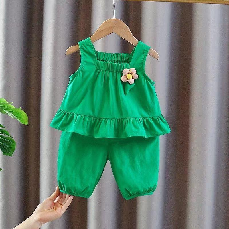 Conjunto Infantil Feminino Duas Peças Moda Estilosa Rua Frita Verão Colete Infantil Shorts Vestido de Verão Estiloso Combina com Tudo Bebê Menina