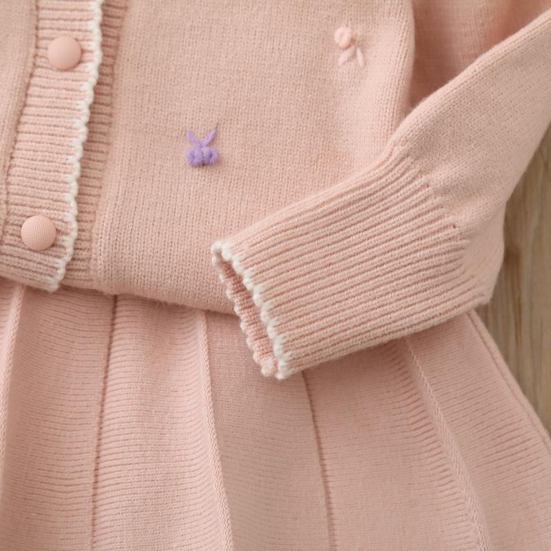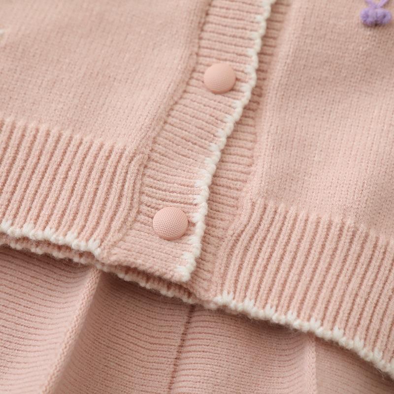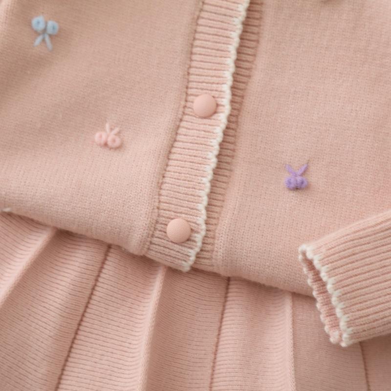 Jaqueta Suéter Infantil 2025 Outono Novo Doce Menininha Conjunto de Saia Duas Peças Terno Suéter Infantil para Meninas