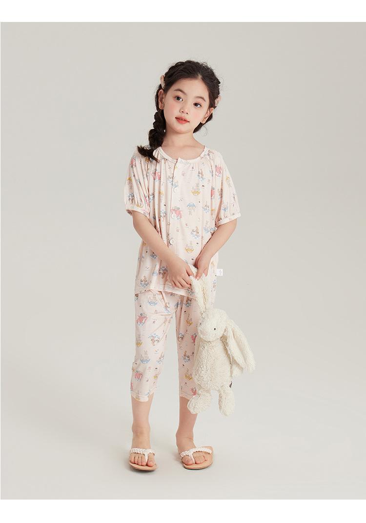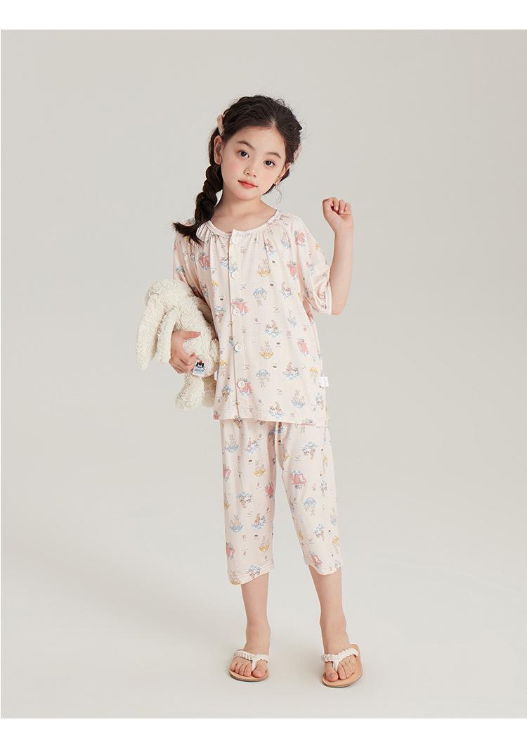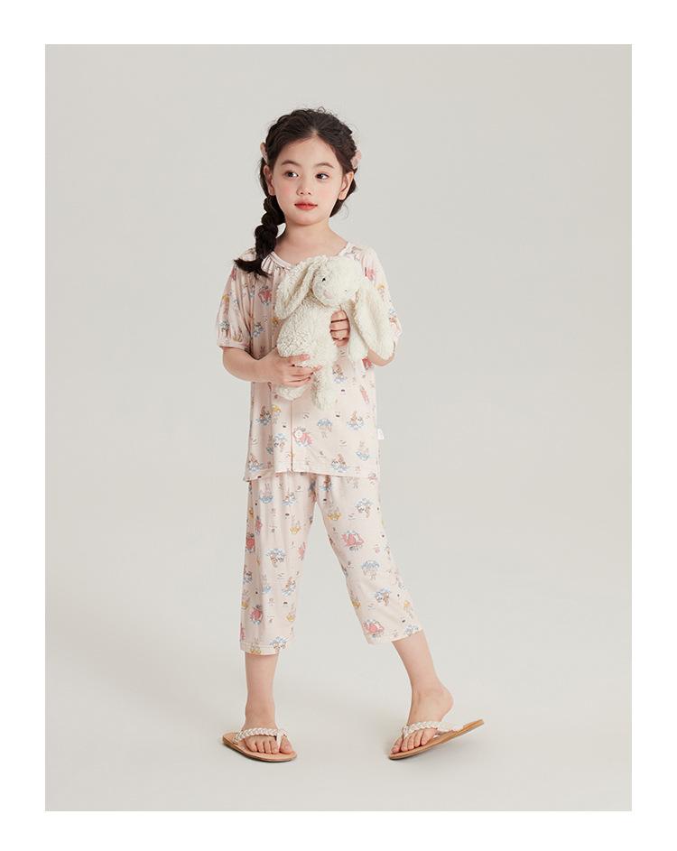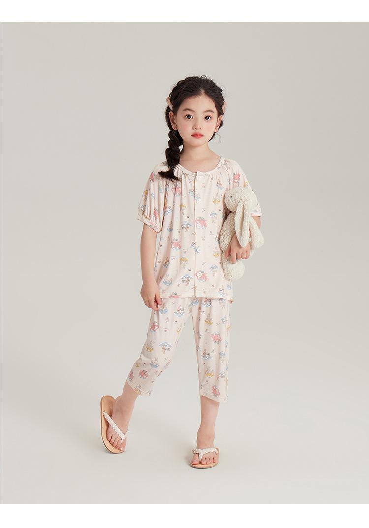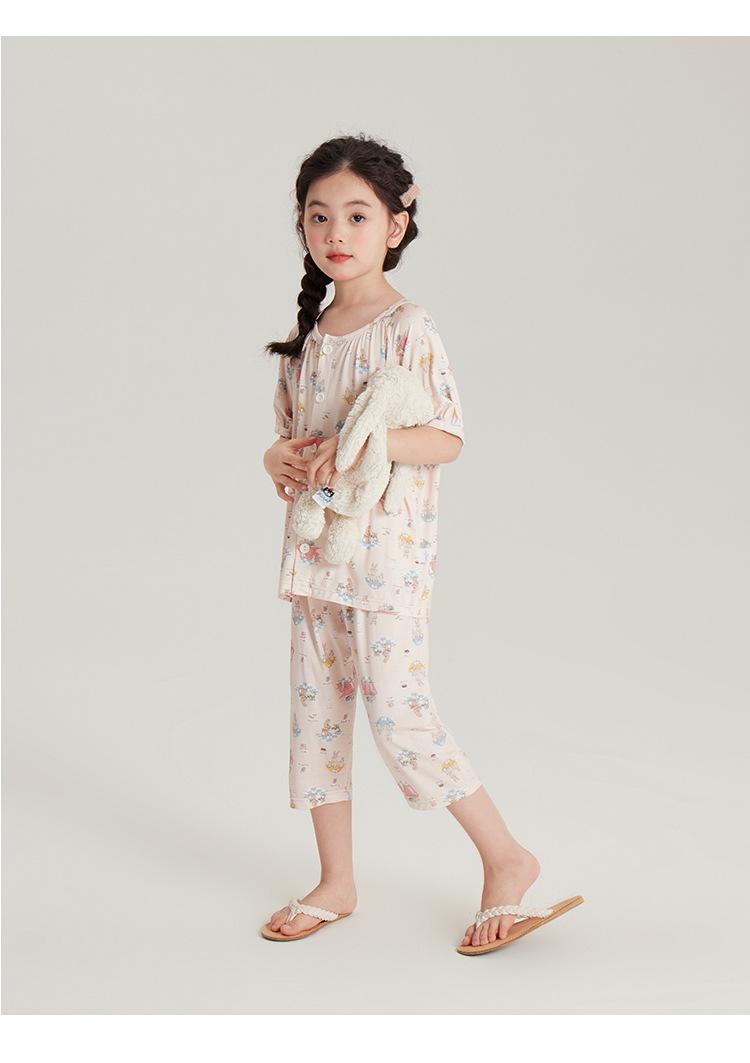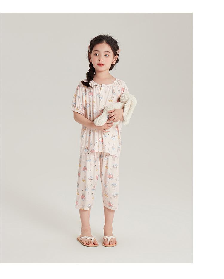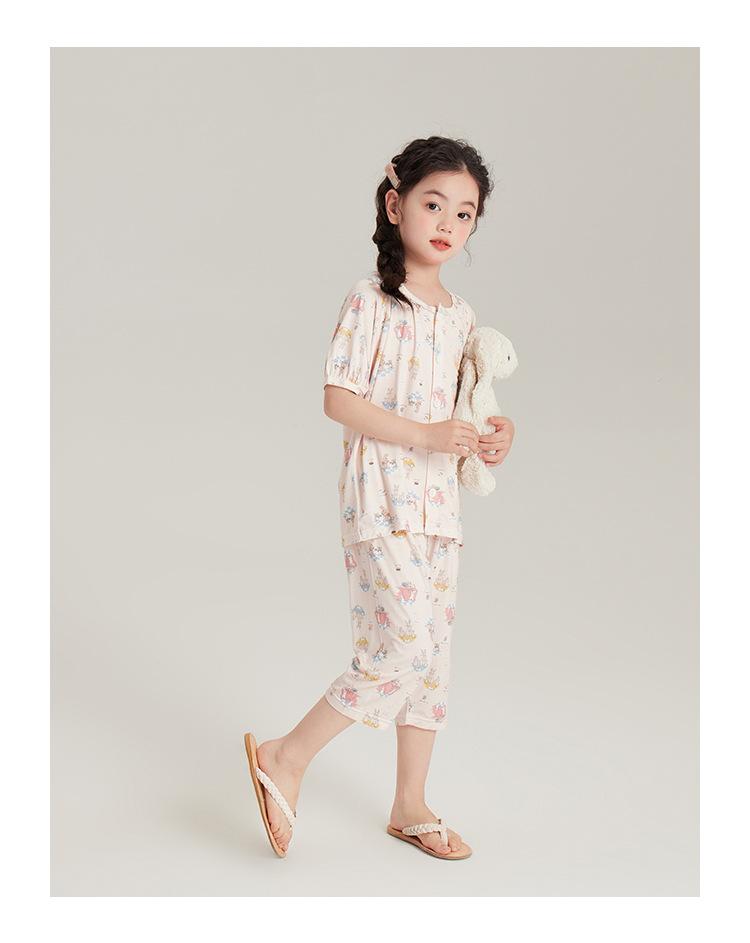 Pijamas Infantis 2024 Verão Novo Meninas Casual Roupas de Casa Manga Curta Shorts Roupa de Casa Bebê Roupas de Casa