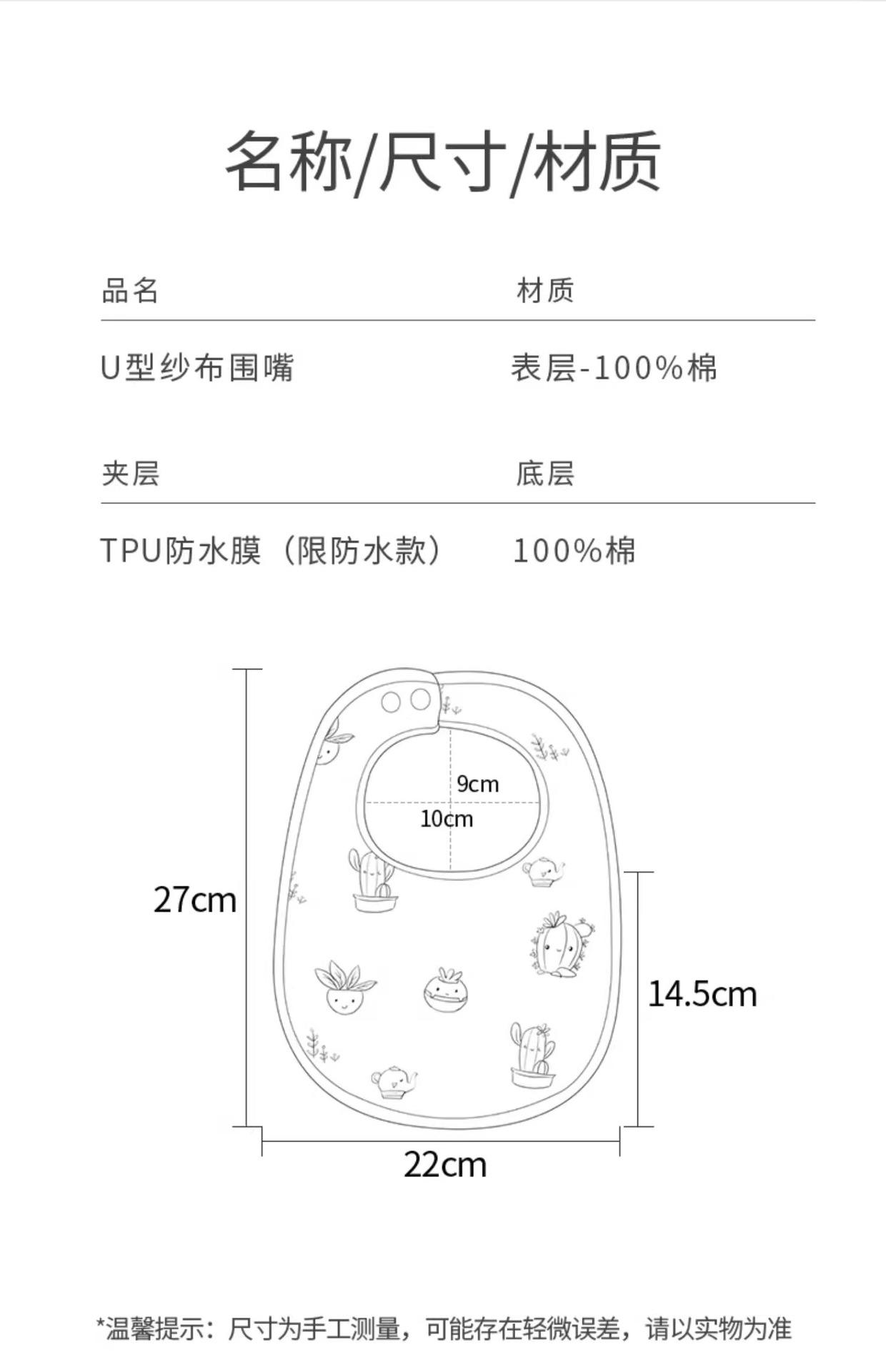 Babador de Bebê em U Fino Tipo Algodão Puro Toalha de Saliva para Recém-Nascido Babador Impermeável Babador