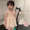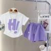 Conjunto de Verão para Meninas Estilo Coreano Casual Renda Camiseta de Manga Curta Shorts para Crianças Pequenas e Médias Conjunto de Duas Peças Estilo Ocidental
