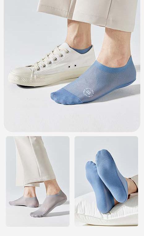 Meias Cano Baixo Personalizadas Verão Seda Gelo Frescas Meias Invisíveis Masculinas Algodão Puro Desodorante Absorvente de Suor Meias Antiderrapantes Estilo Fino Masculino