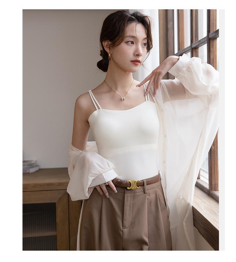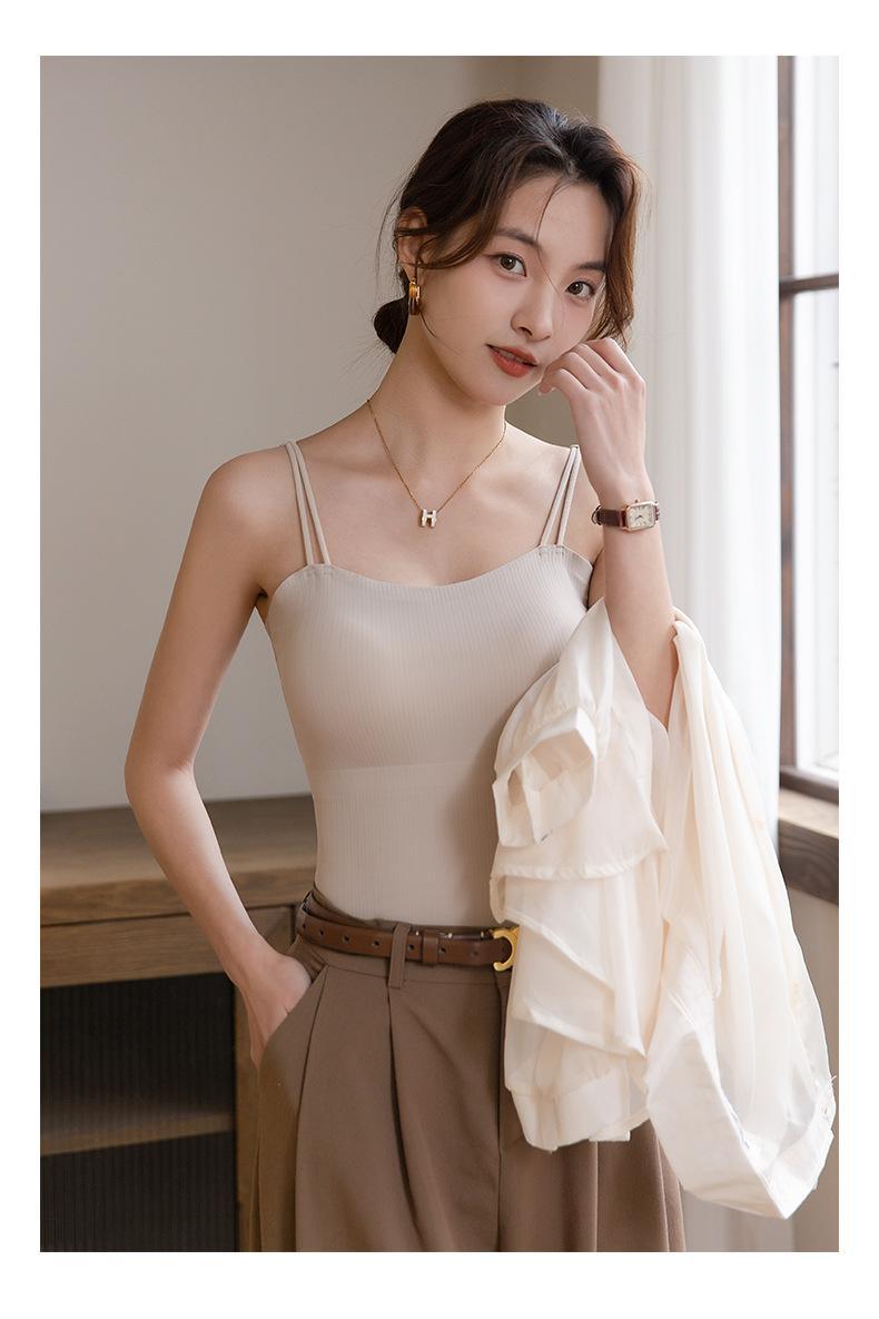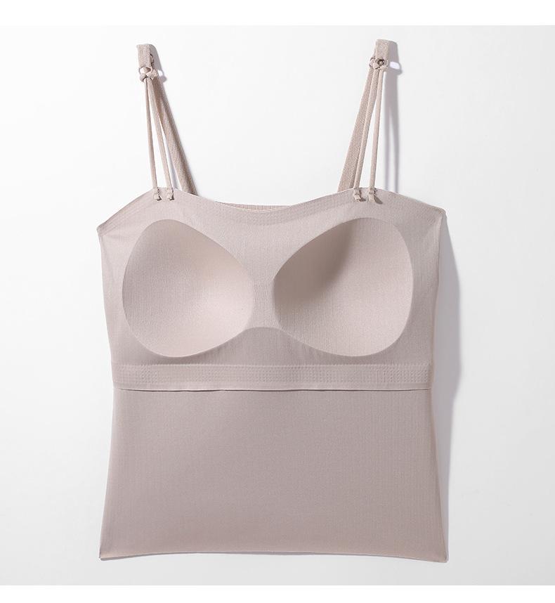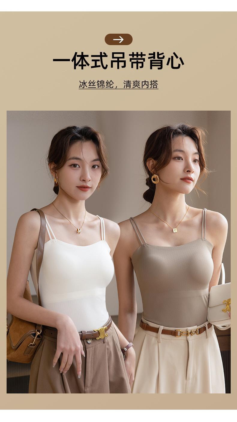 Camisola de Seda Gelo Feminina Sutiã Interno com Bojo Sutiã Peça Única Sem Marcas Roupa Íntima Base para Uso Externo Verão