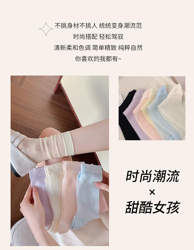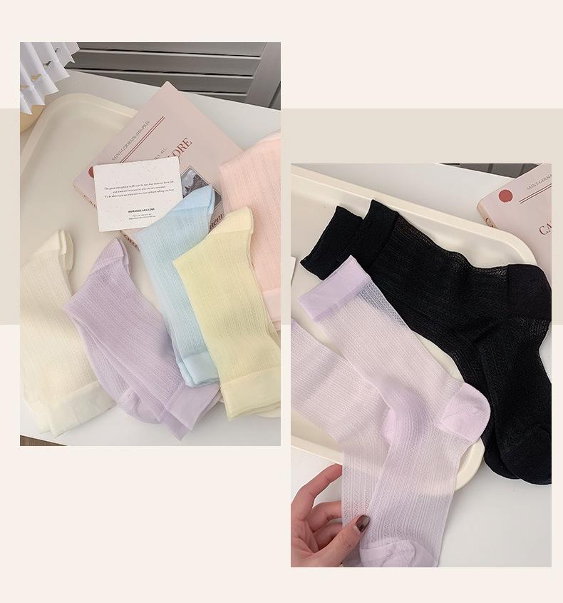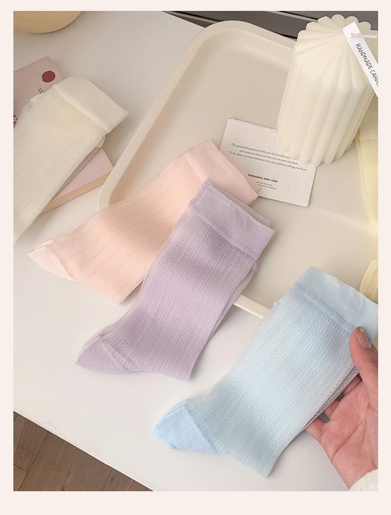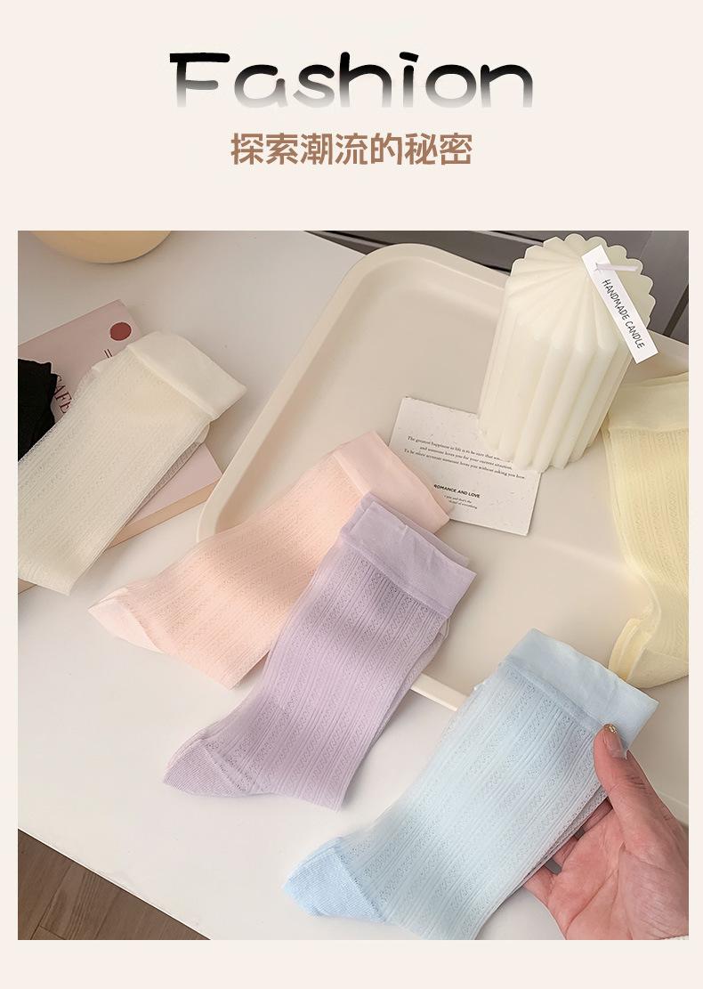 Meias Cor Doce Meias Finas de Seda de Vidro de Verão Femininas Meias Médias Sem Costura Respiráveis de Malha Meias Empilhadas de Cor Sólida que Combinam com Tudo