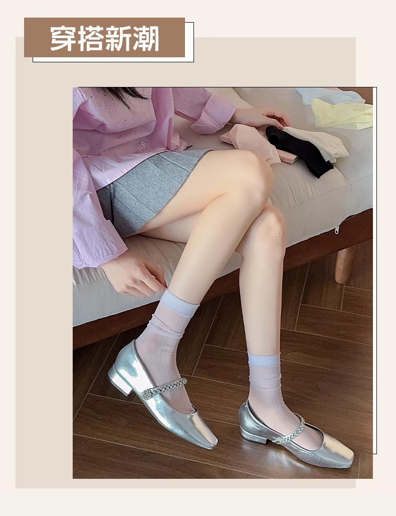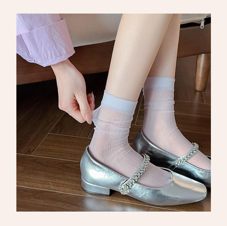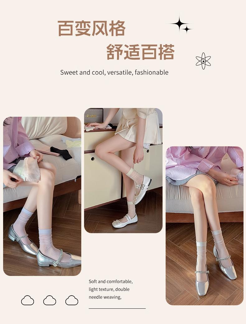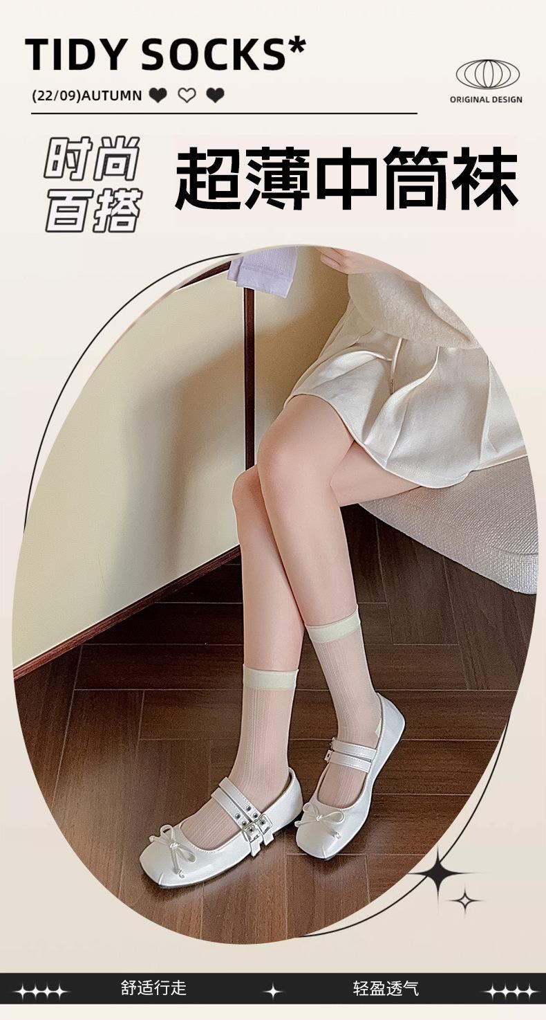 Meias Cor Doce Meias Finas de Seda de Vidro de Verão Femininas Meias Médias Sem Costura Respiráveis de Malha Meias Empilhadas de Cor Sólida que Combinam com Tudo