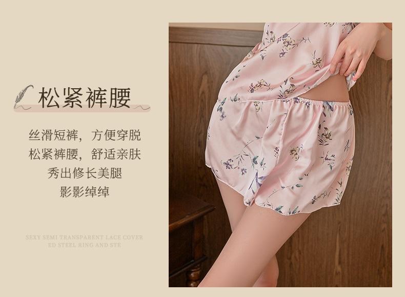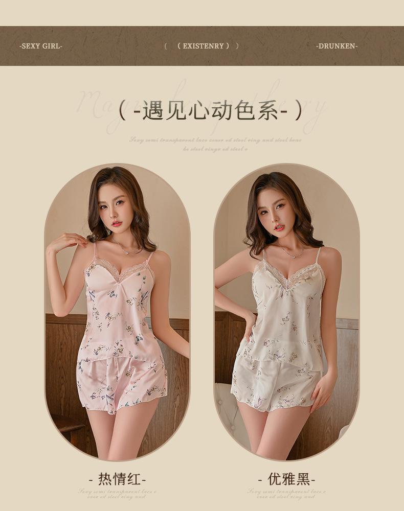 Lingerie Sexy, Desejo Puro Sexy, Pijama Suspensório Decote V Profundo, Shorts Estampados Doces Tentadores, Conjunto de Roupa de Casa de Duas Peças