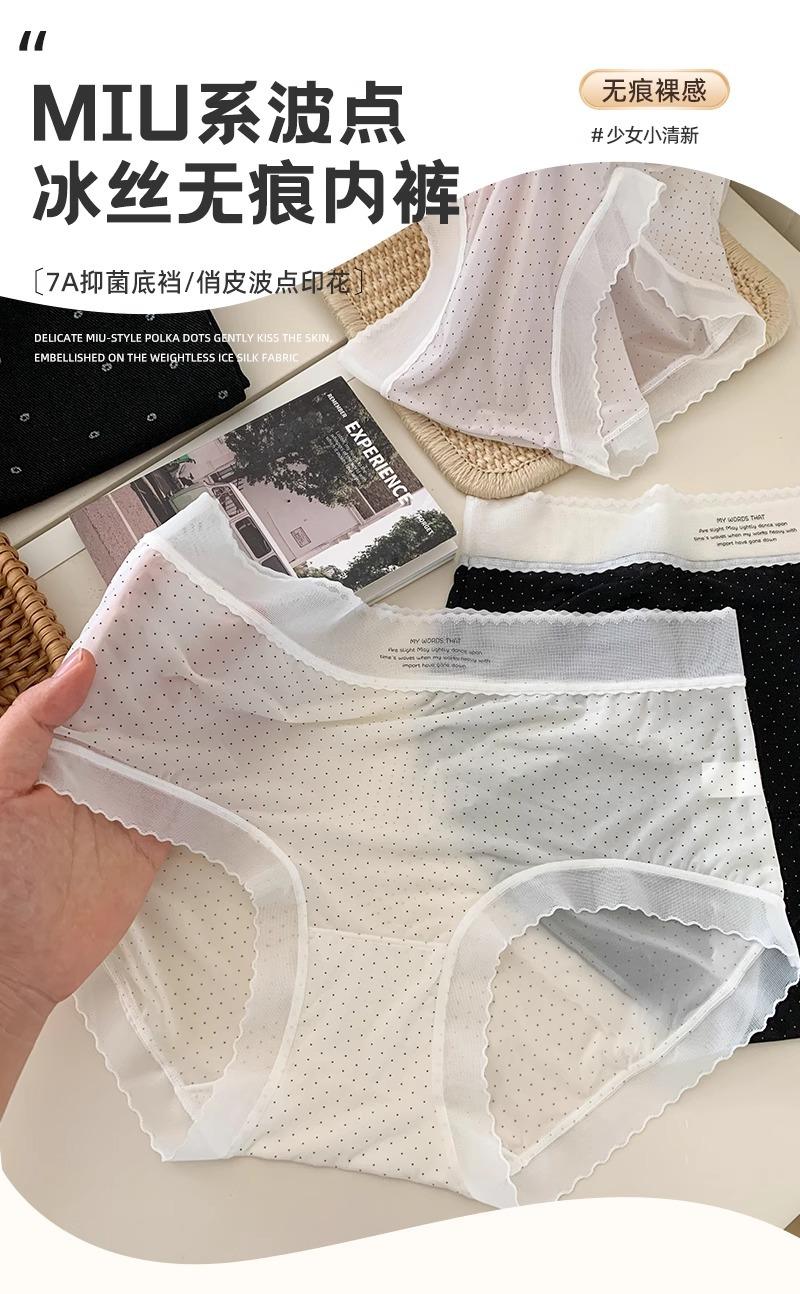 Roupa Íntima Nude de Seda de Gelo para Meninas Verão Fina Respirável Cintura Média Sem Costura 7A Antibacteriana Sexy Pele de Gelo Calcinhas Femininas