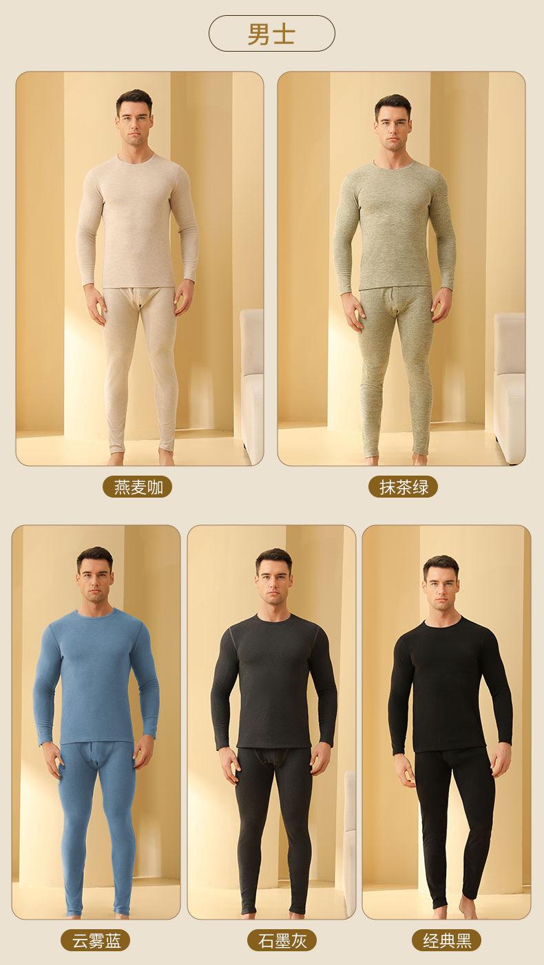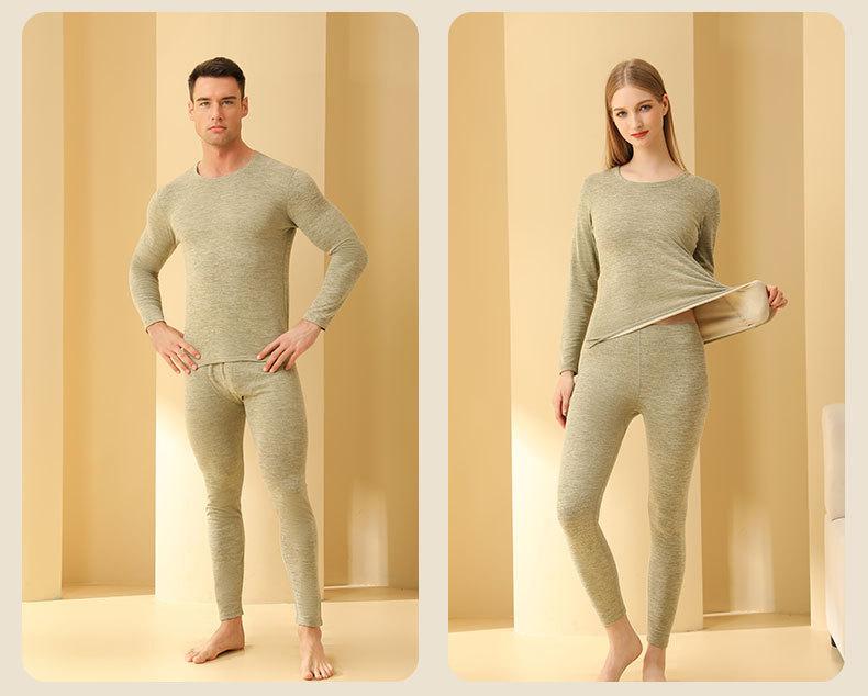 Outono e Inverno Roupa Íntima Térmica Masculina Lã Seda Tops e Calças Conjunto Básico Colorido para Casal