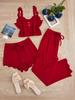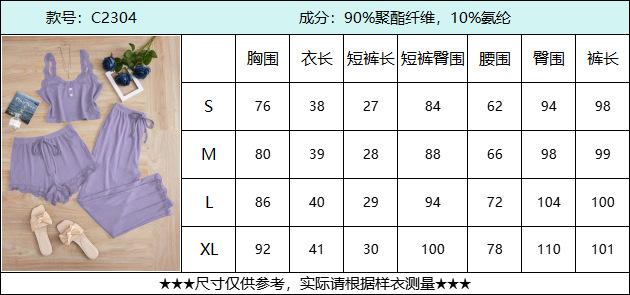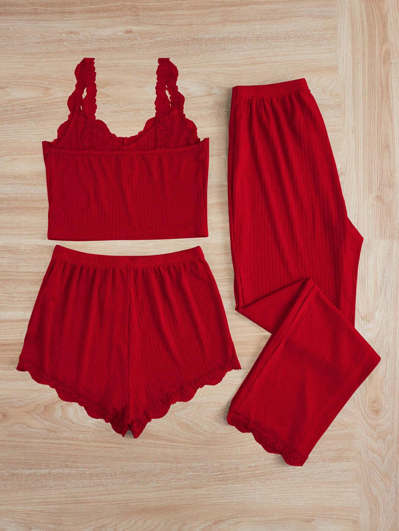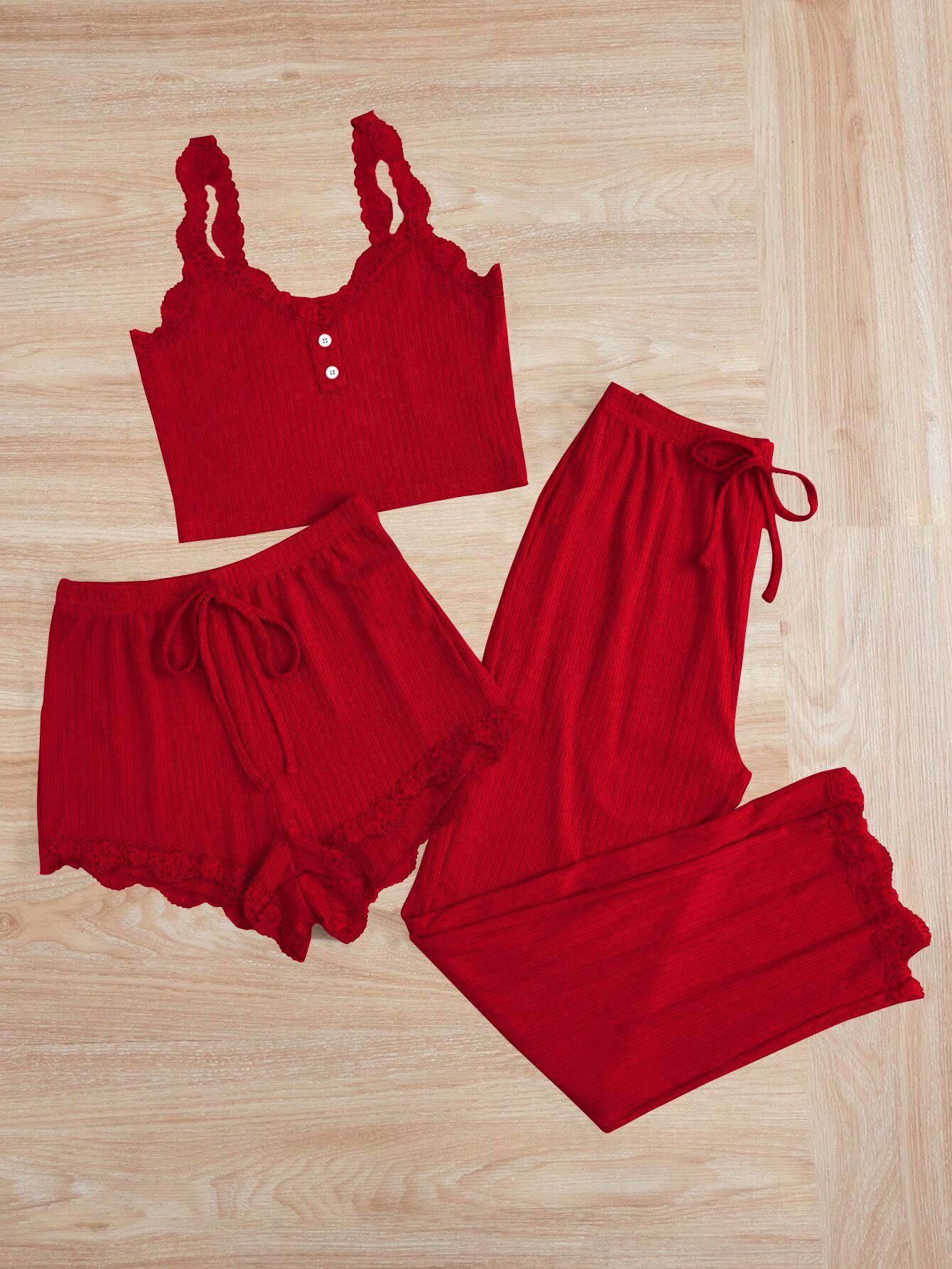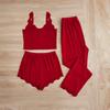 Pijama Popular de Renda Transfronteiriça para Mulheres, Conjunto de Renda de Três Peças, Suspensórios, Shorts, Pijama, Roupa de Casa Sexy Feminina