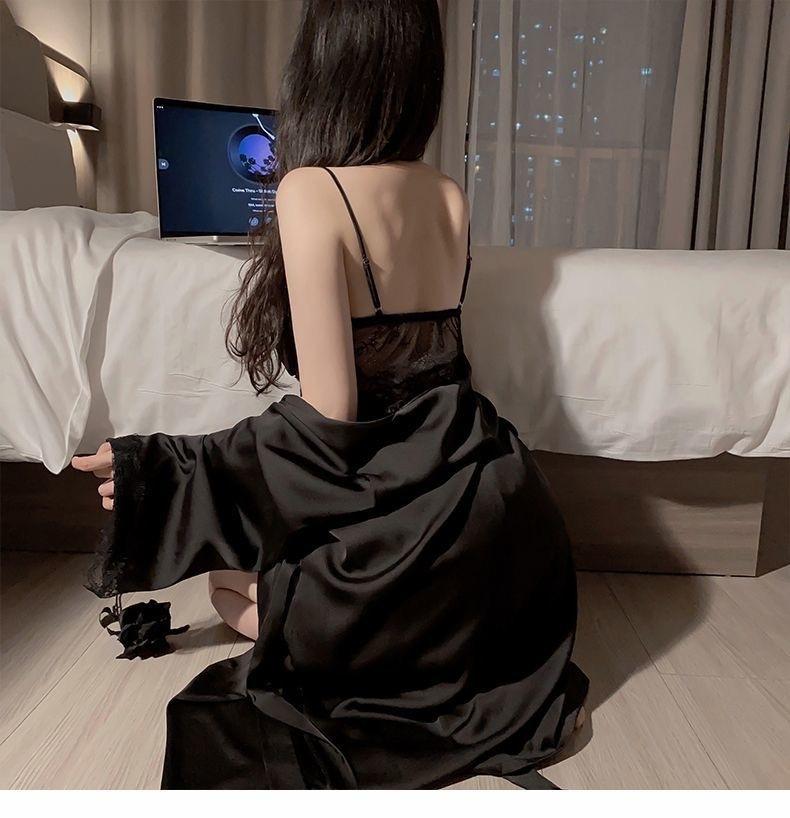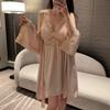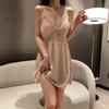 Pijama Feminino Verão Seda Sexy Renda Seda Gelo Alça Fina Bojo Camisola Fina Primavera e Verão Roupa de Casa