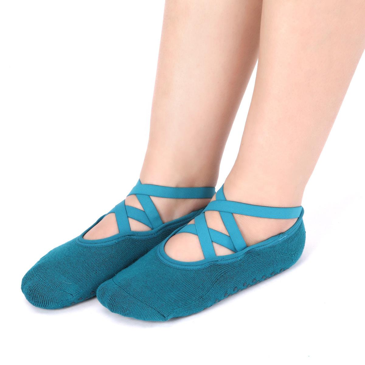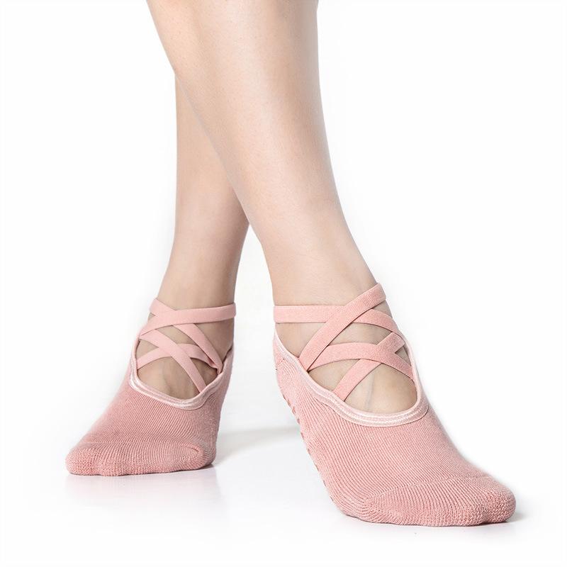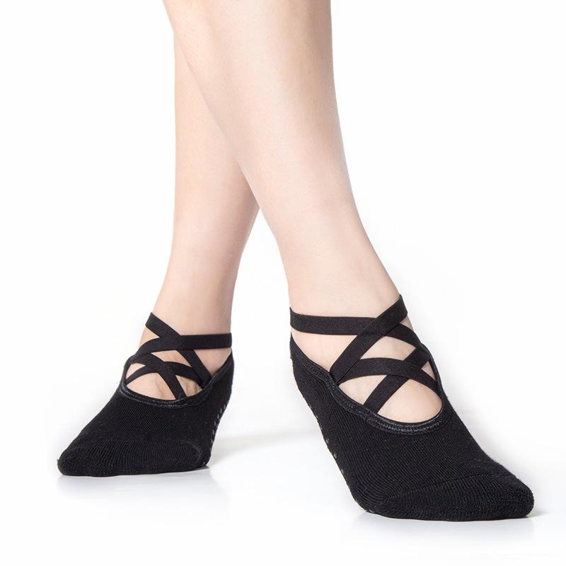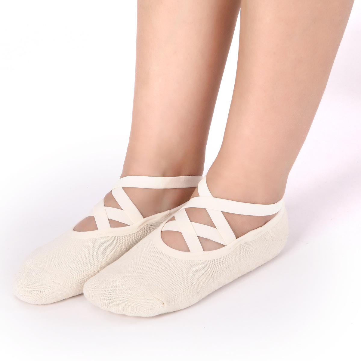 Meias de Yoga Cross Cano Curto Respiráveis Espessas Bolsa Feminina Antiderrapantes Esportivas Pilates Dança para Absorver Suor