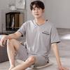 Pijama Masculina de Verão Modal Manga Curta Shorts Tamanho Grande Conjunto Seda Gelo Fina Juventude Masculina Verão Roupa de Casa