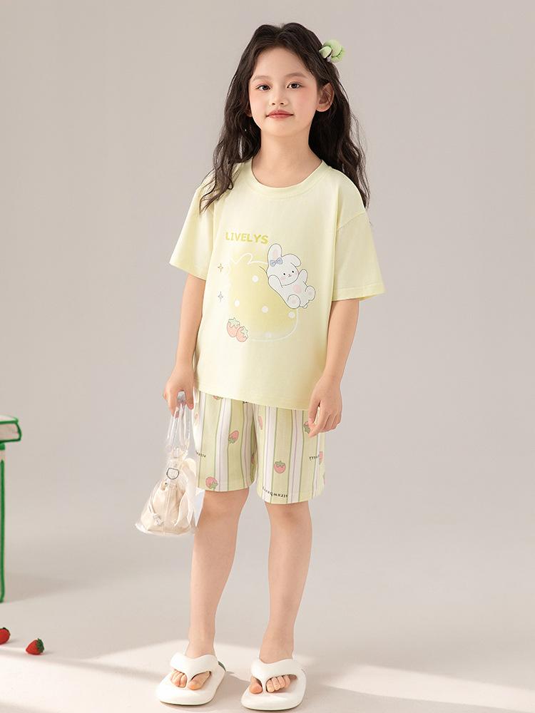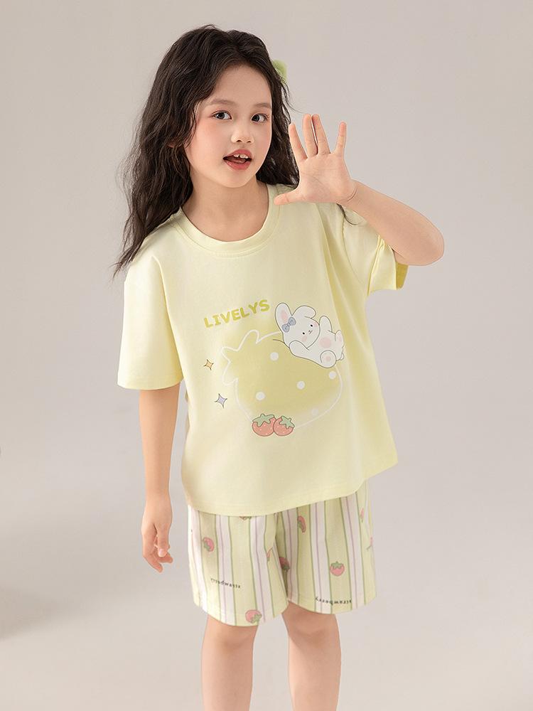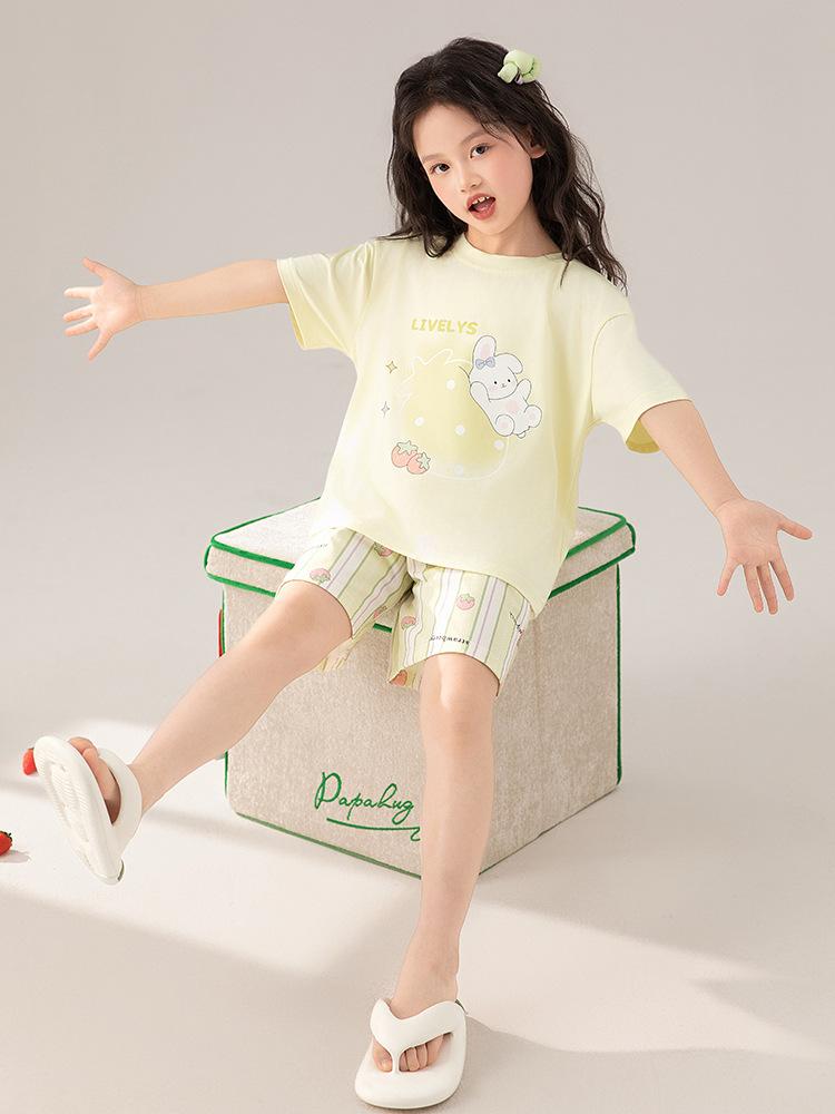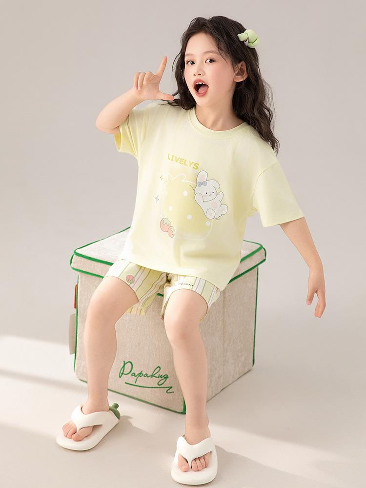 Compre Pijama de Verão para Meninas de Manga Curta Algodão Modal Infantil Roupa de Casa Fina de Verão Conjunto Doce para Menina no atacado no Joom.pro