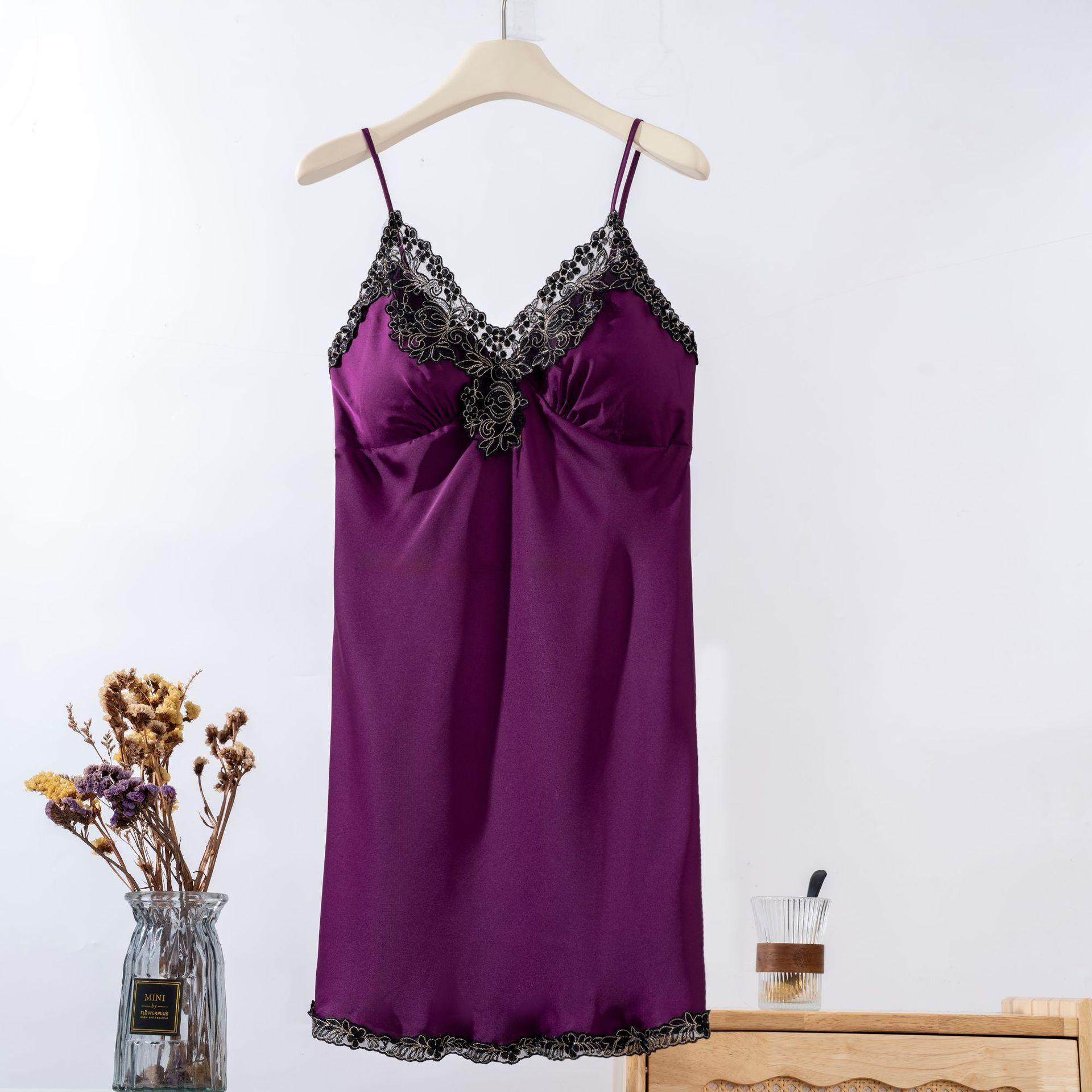 Pijama Feminina Verão Seda Gelo Camisola de Alças Fina Seda Imitação Seda Peça Única Drop Shipping Sexy Roupa de Casa para Mulheres