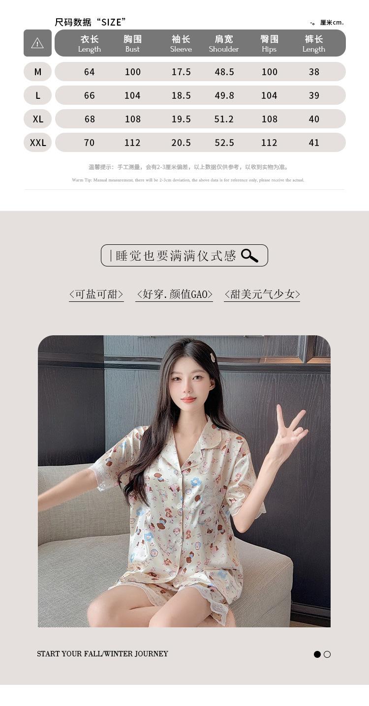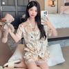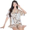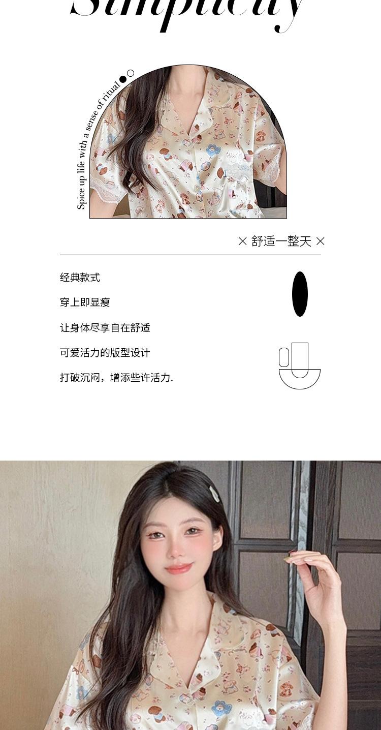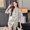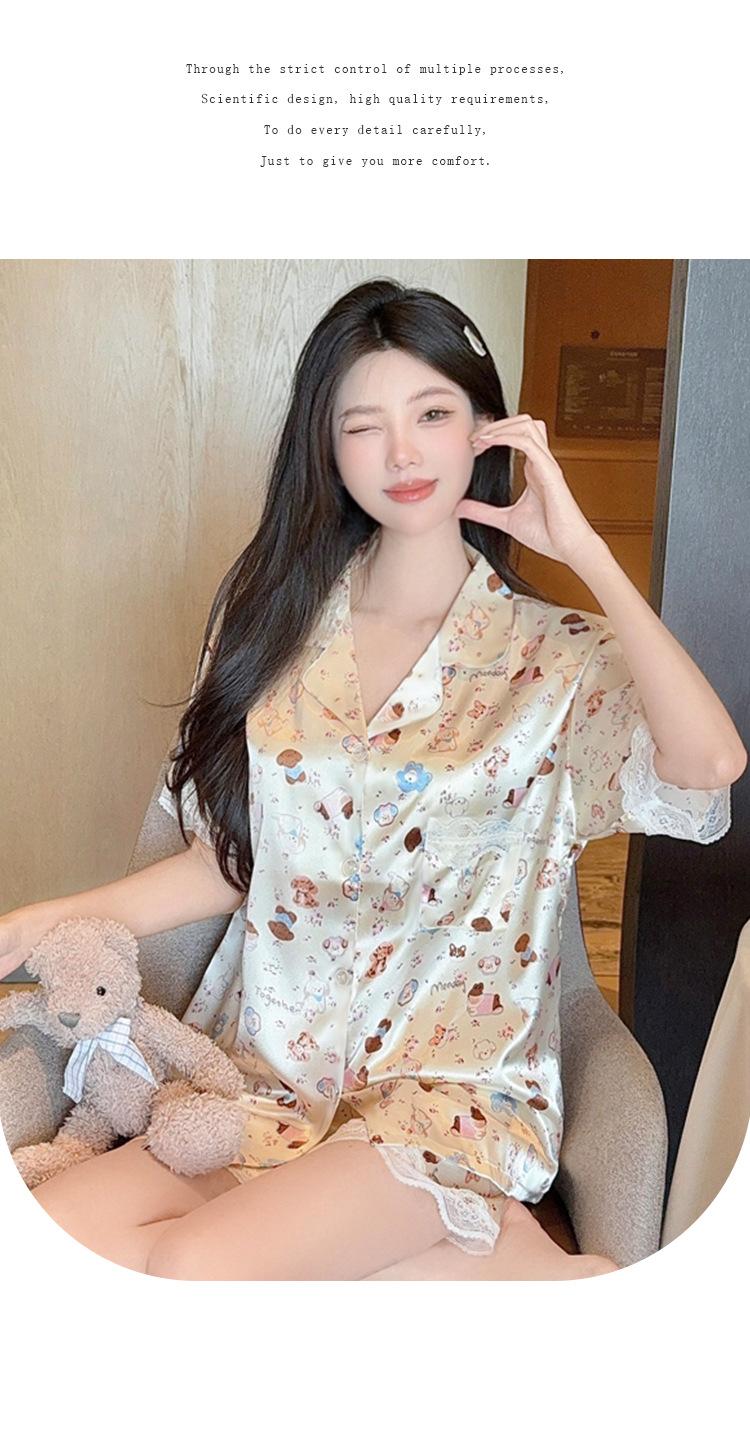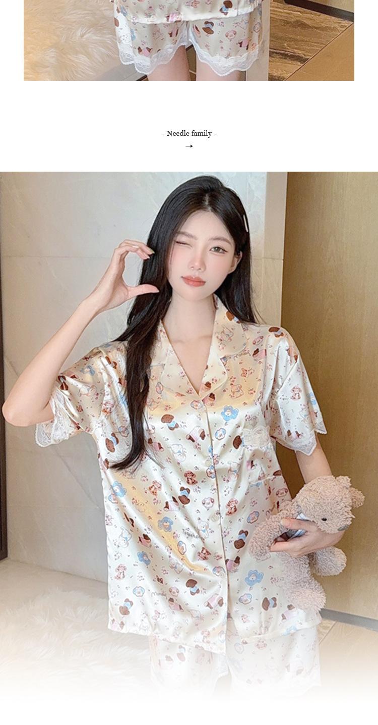 Pijama de Seda Gelo para Mulheres Verão Estilo Luxo Leve de Alta Qualidade Floral Cachorrinho Renda Manga Curta Conjunto de Roupa de Casa Atacado