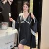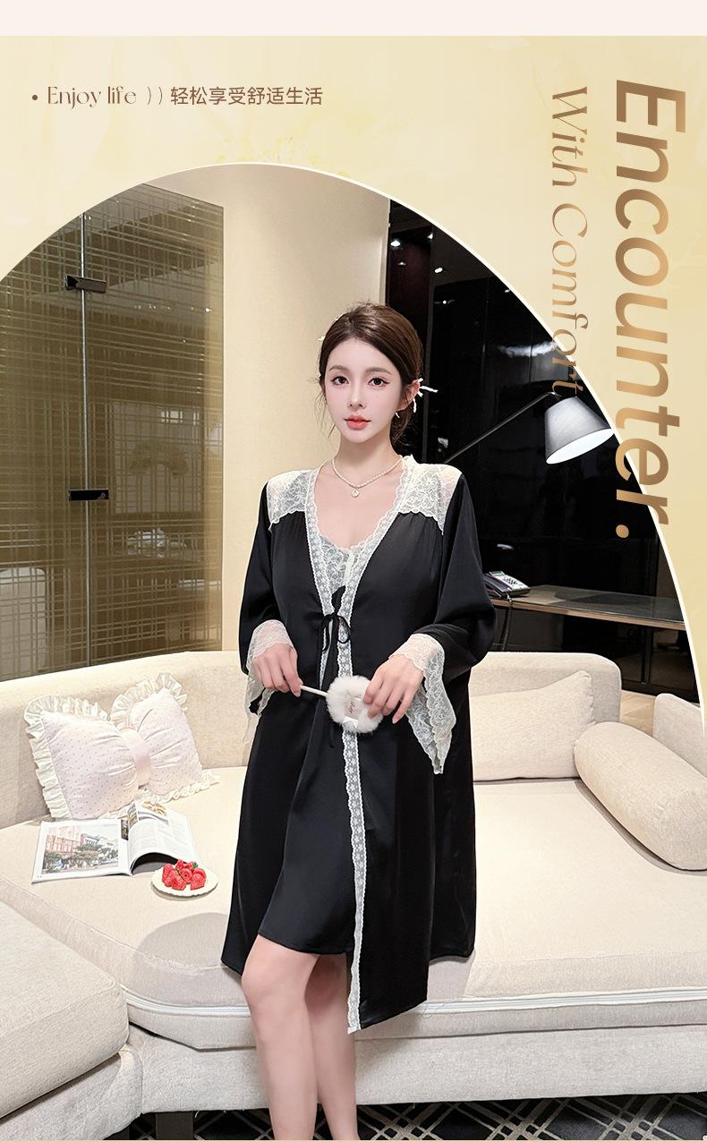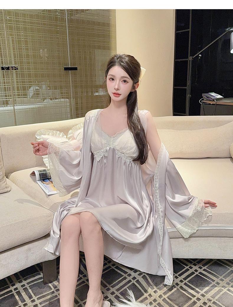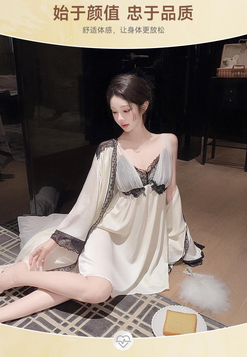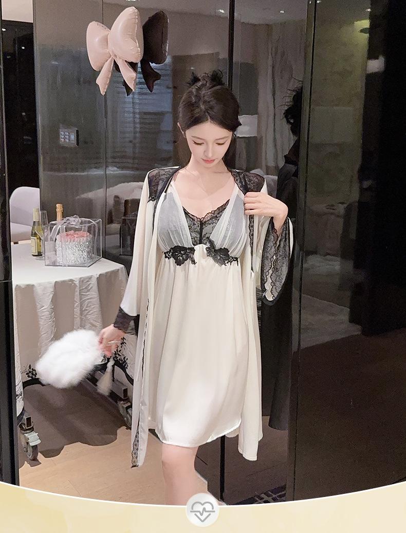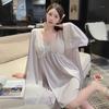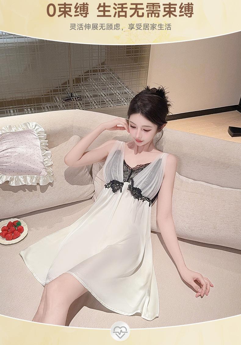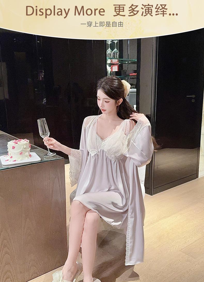 Novo Pijama Feminino de Verão de Seda Gelo Francês de Luxo Leve de Duas Peças Camisola Estilo Desejo Puro Longo Vestido de Casa