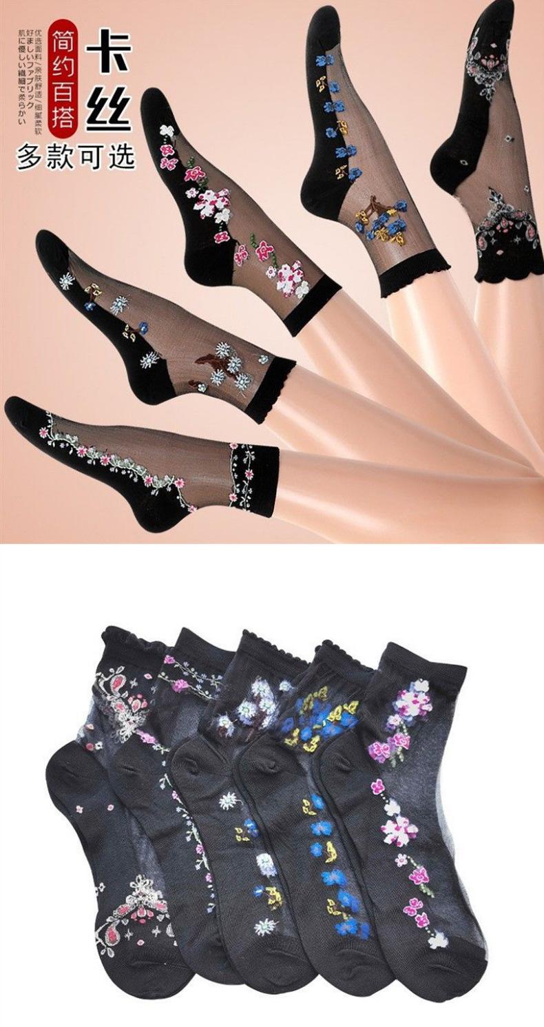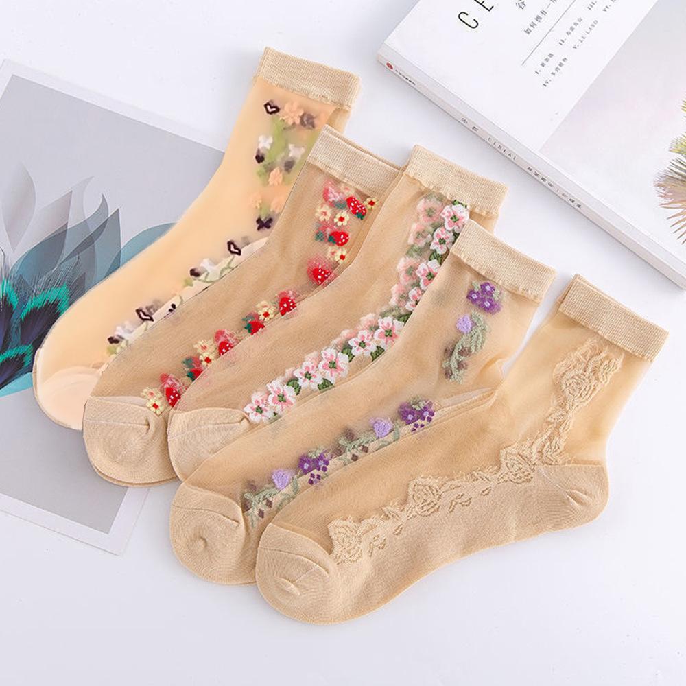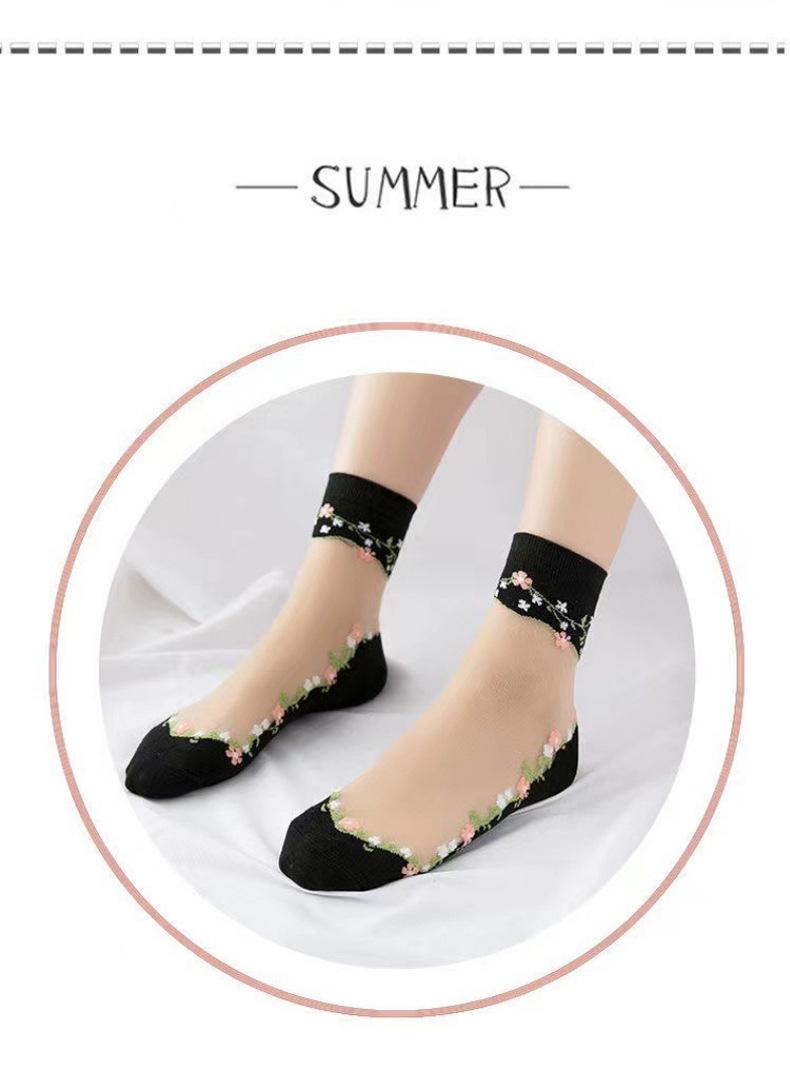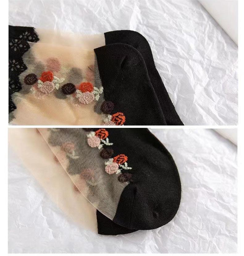 Atacado Meias Curtas Femininas de Verão Finas Respiráveis de Malha Floral Meias de Seda Cristal