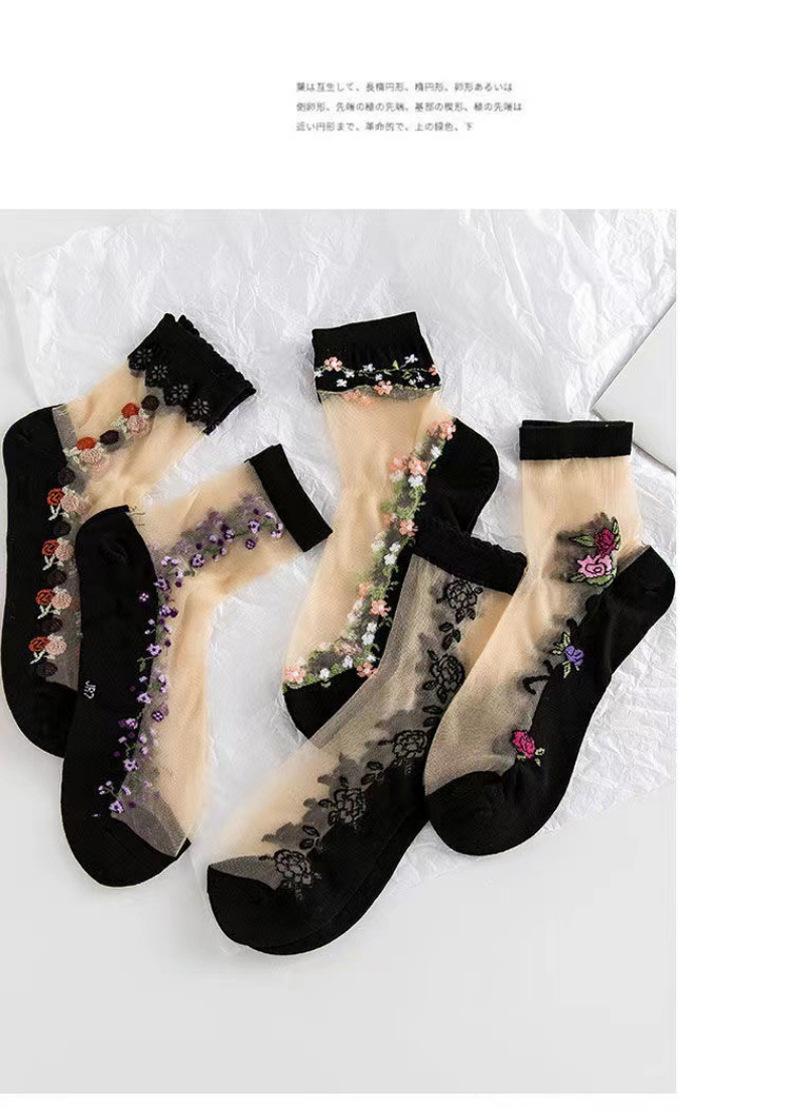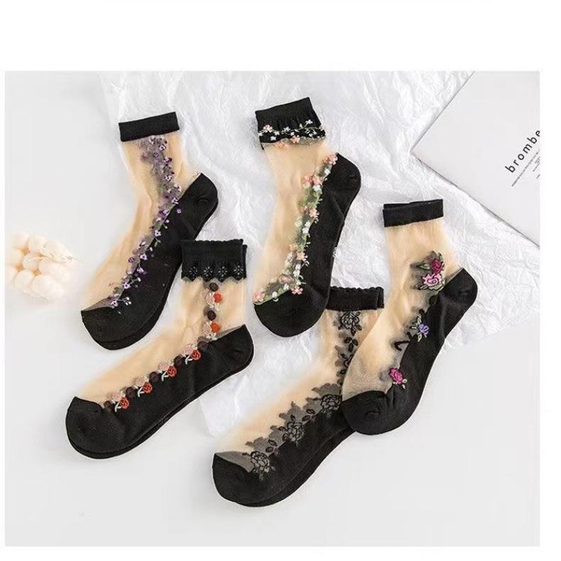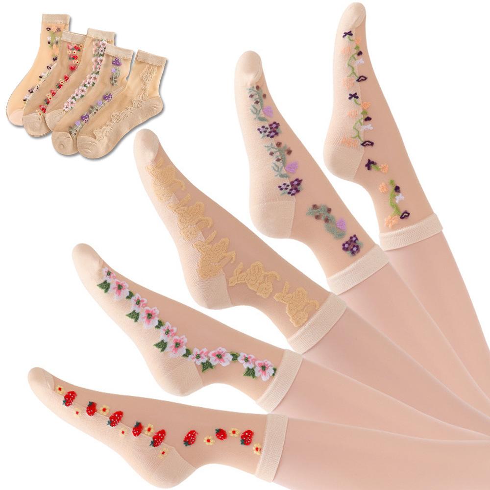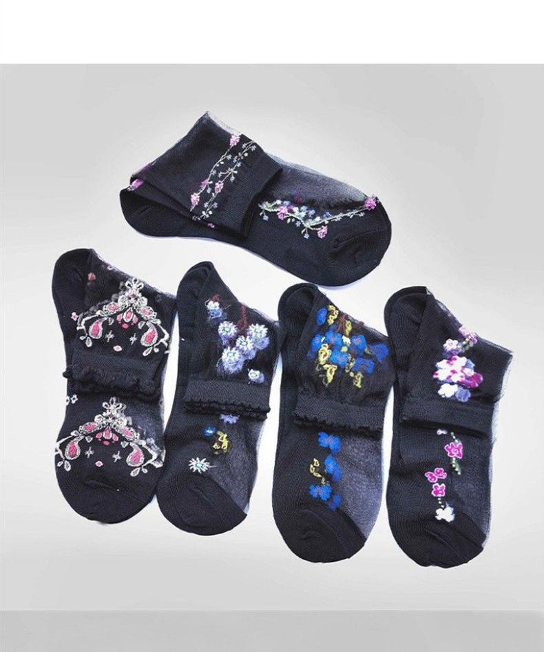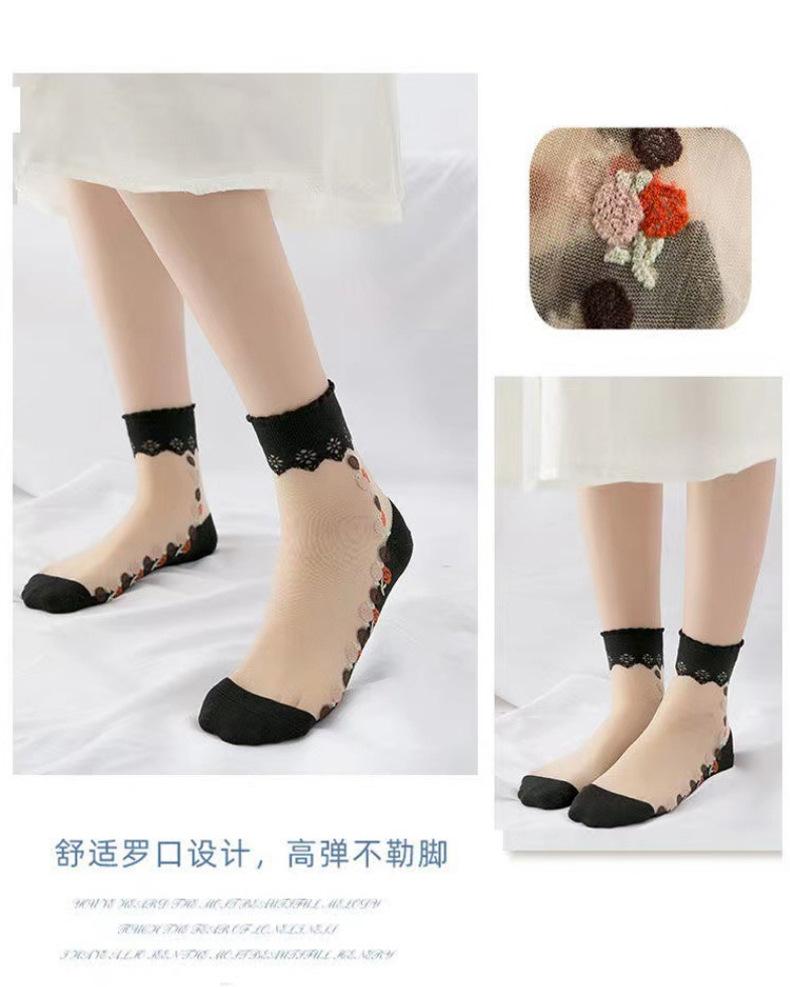 Atacado Meias Curtas Femininas de Verão Finas Respiráveis de Malha Floral Meias de Seda Cristal