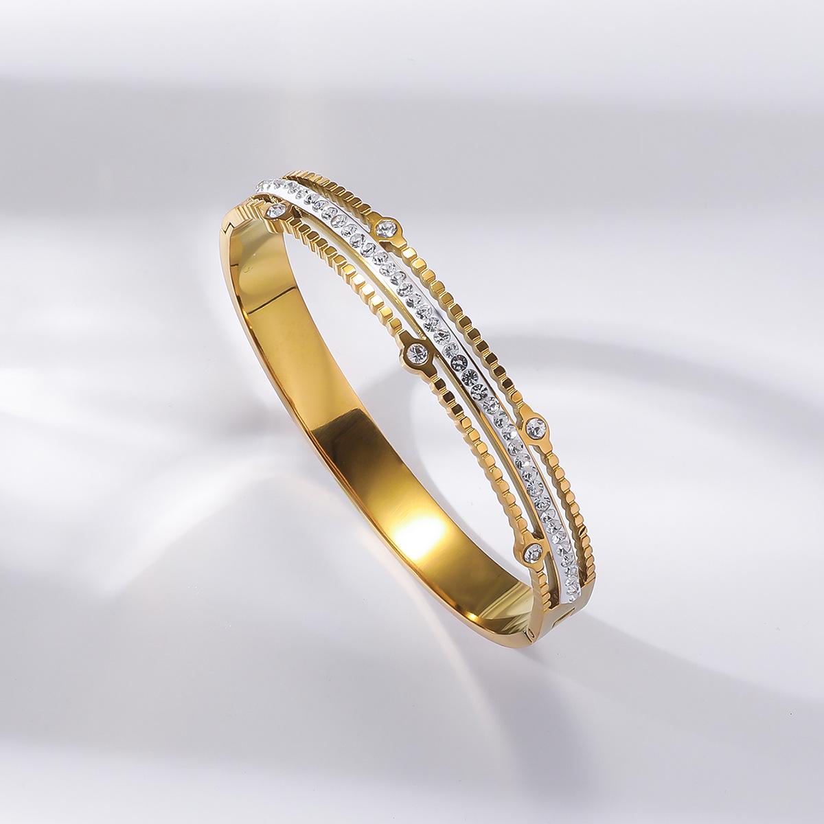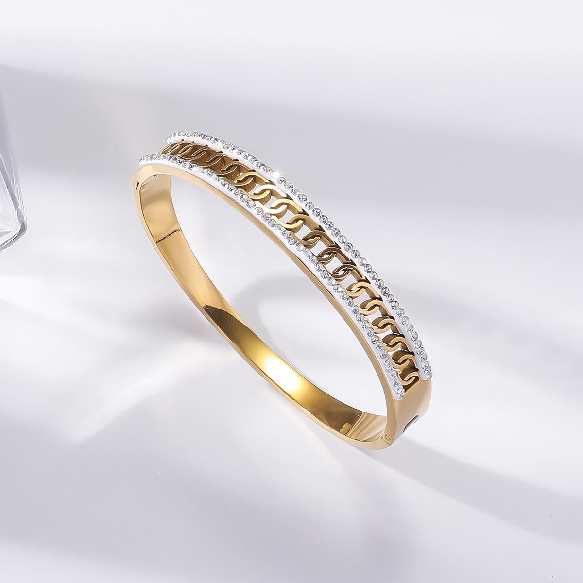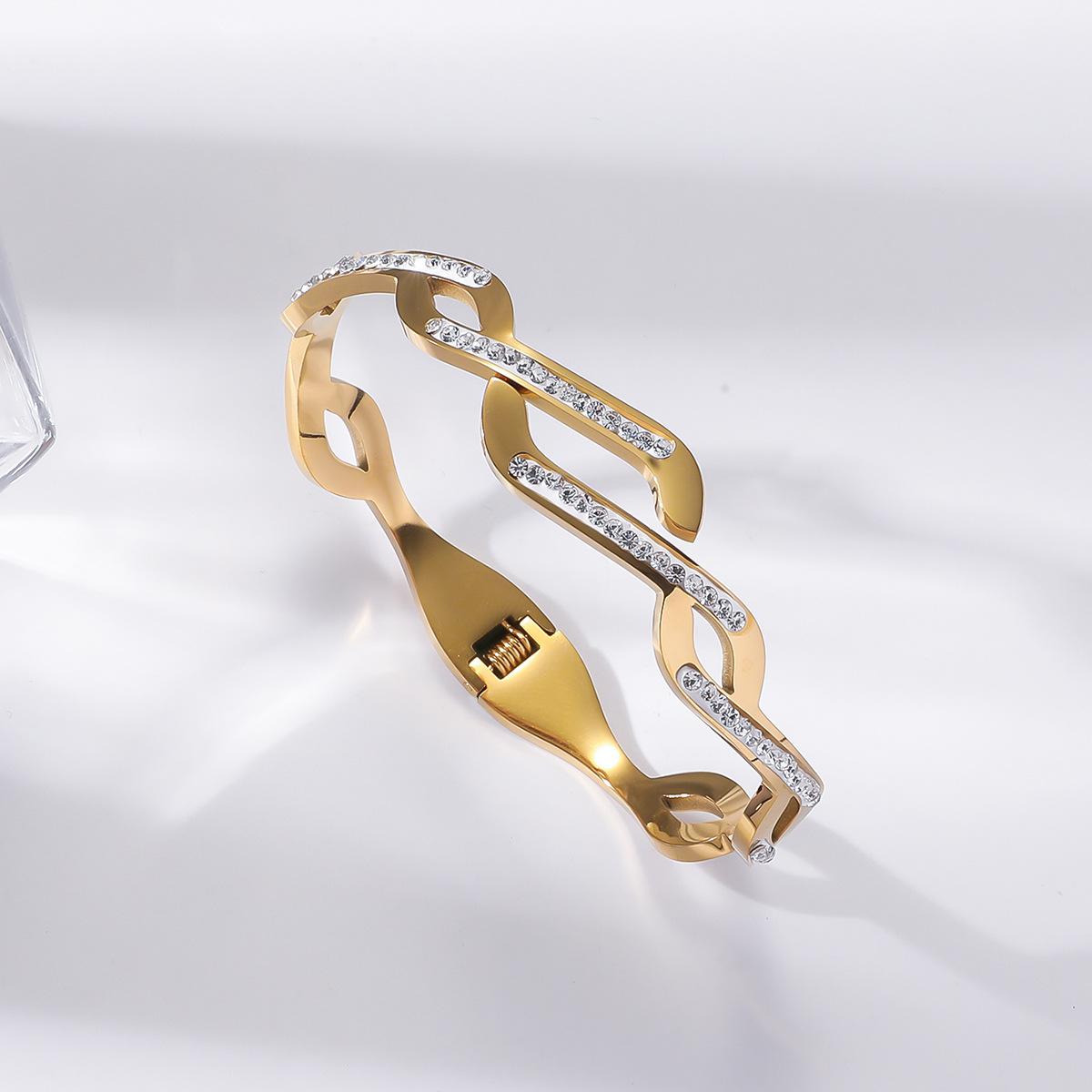 Pulseira de Zircônia Moda Transfronteiriça Europeia e Americana Comutador Banhado a Ouro 18K Pulseira Que Não Desbota Design de Nicho Joia de Mão Versátil