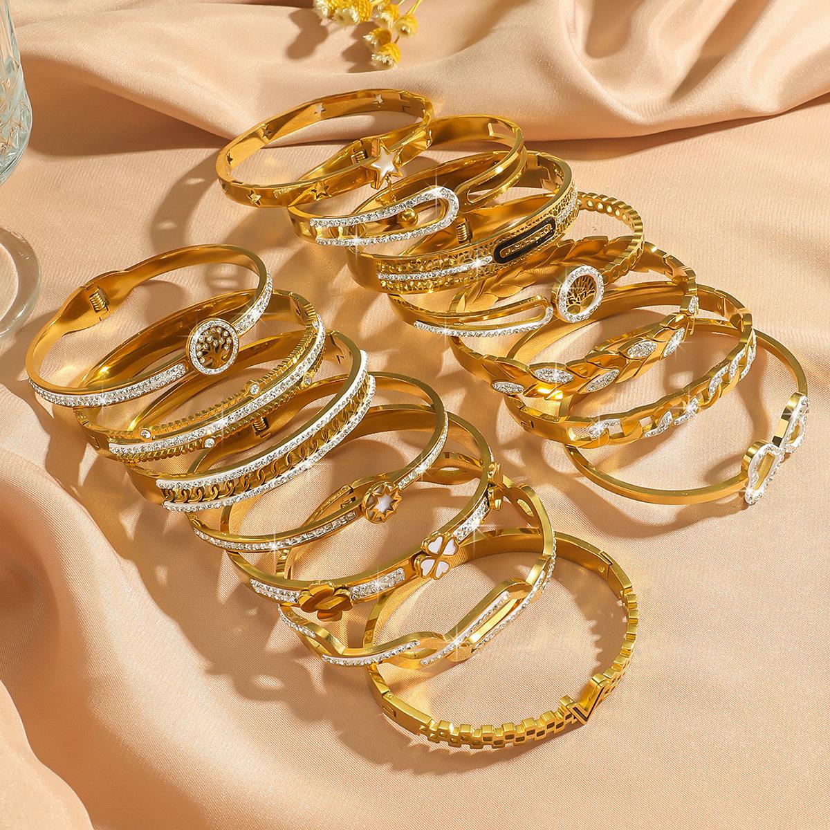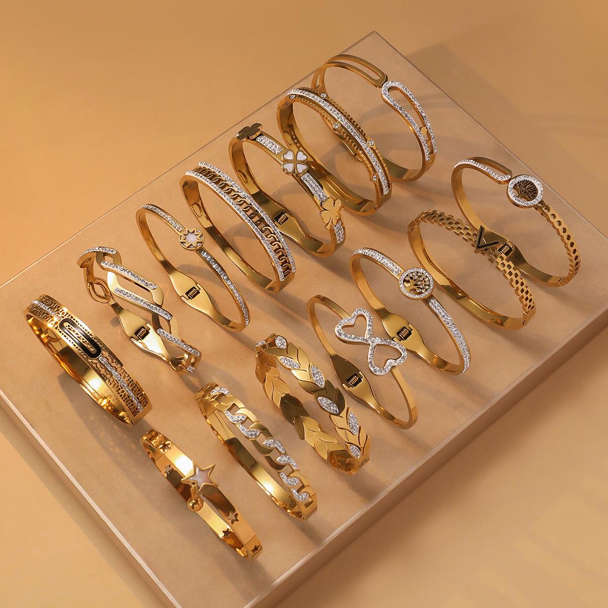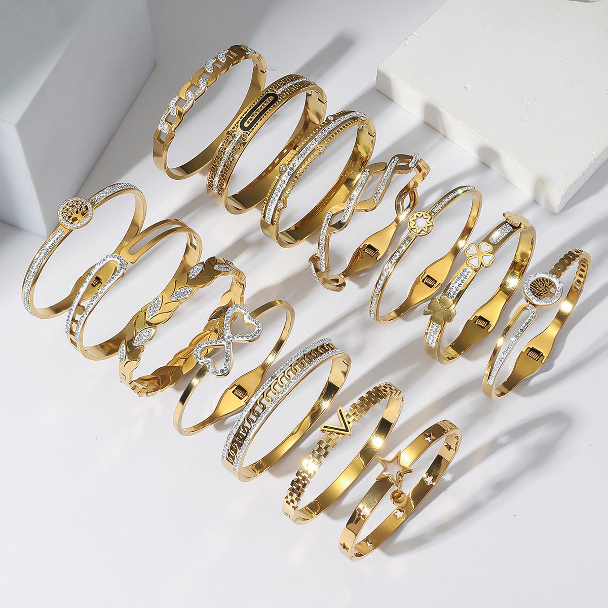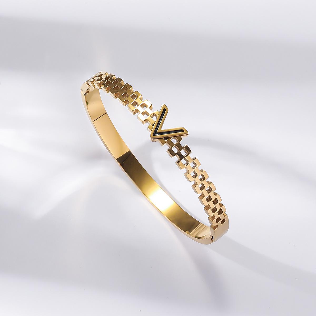 Pulseira de Zircônia Moda Transfronteiriça Europeia e Americana Comutador Banhado a Ouro 18K Pulseira Que Não Desbota Design de Nicho Joia de Mão Versátil