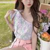 Doce Americano e Cool Sexy Gravata Borboleta Suspensor Recortado Slim Sem Mangas Estampado Top Curto da Moda