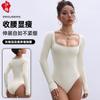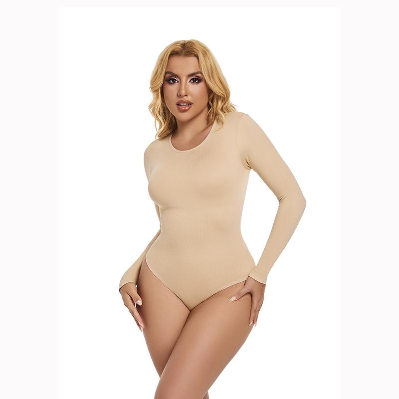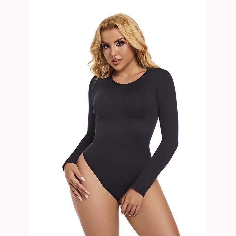Body Europeu e Americano Transfronteiriço Mais Vendido Sem Costura Modelador de Cintura Cintura Gola Redonda Manga Longa Macacão em T