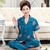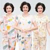 Pijama de Verão de Manga Curta de Algodão Seda para Mulheres de Meia-Idade e Idosas Conjunto de Duas Peças Roupa de Casa Vovó Cardigã Terno de Algodão Artificial