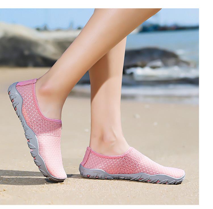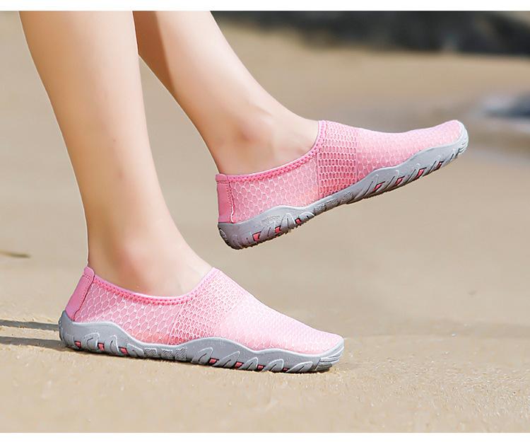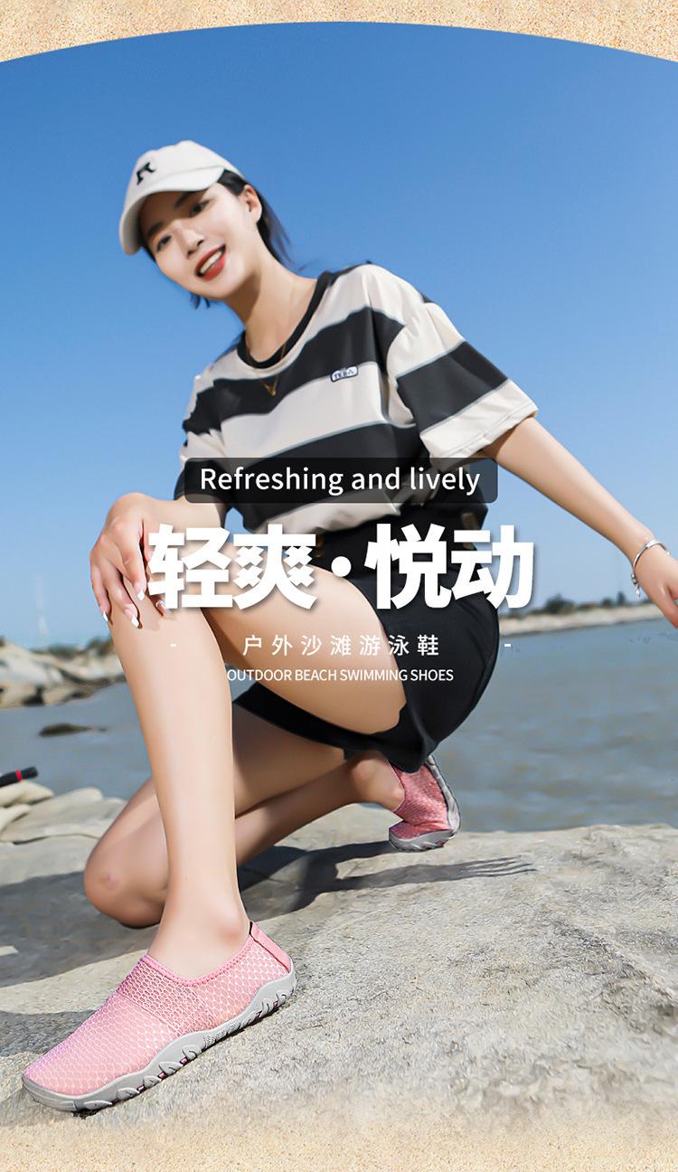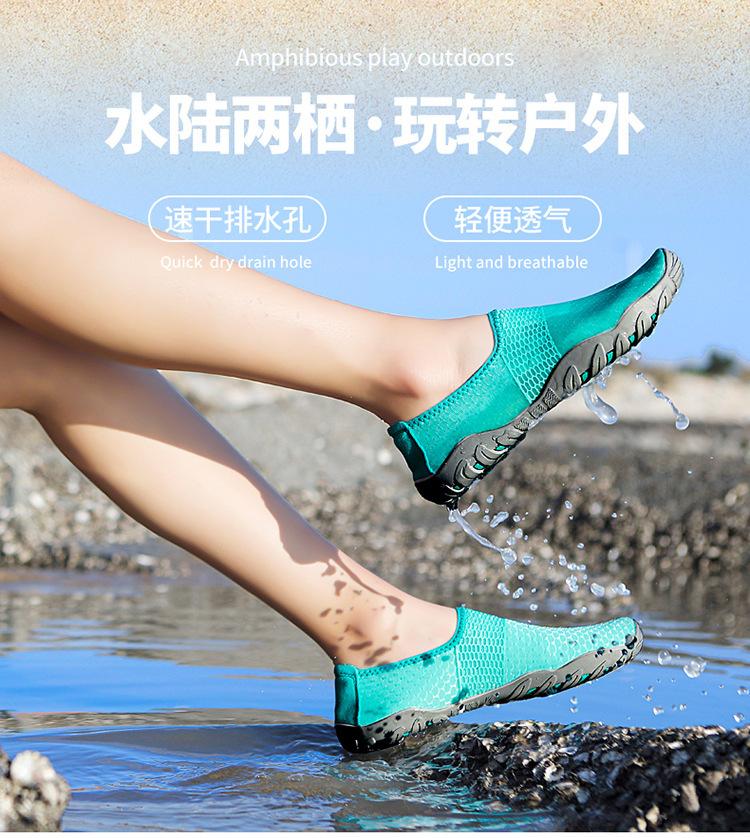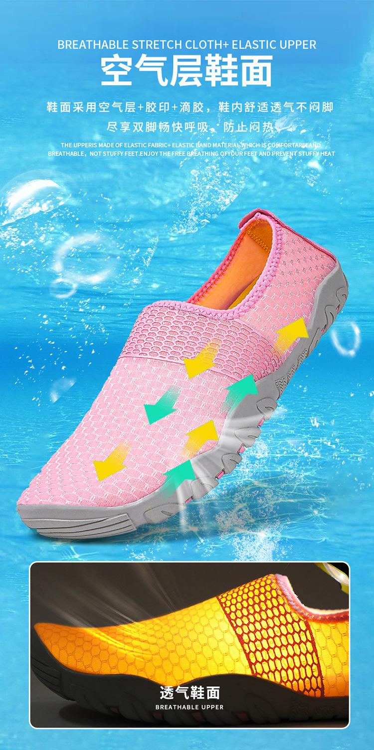 Novos sapatos de natação e mergulho transfronteiriços, sapatos de praia para atividades ao ar livre, sapatos de casal para rio acima, sapatos de pele com adesivo vermelho para os pés, sapatos de mergulho com snorkel, sapatos para vadear