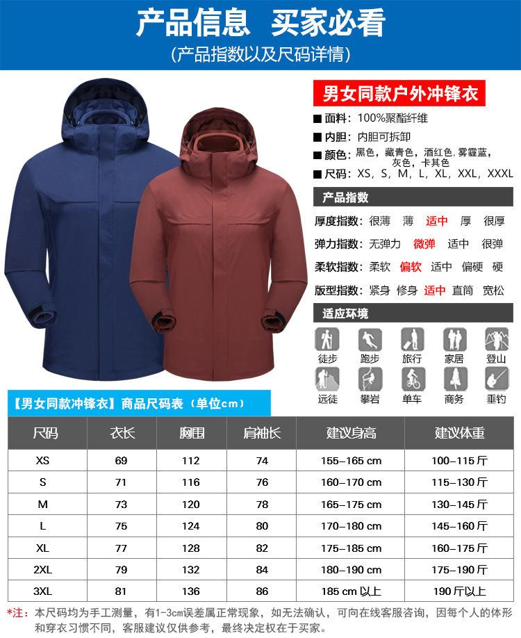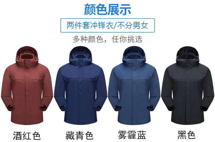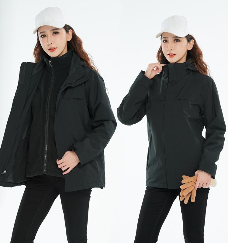 Jaqueta Três-Em-Um para Homens e Mulheres, Forro de Lã, Roupa de Trabalho de Duas Peças Removível, À Prova de Vento e Impermeável
