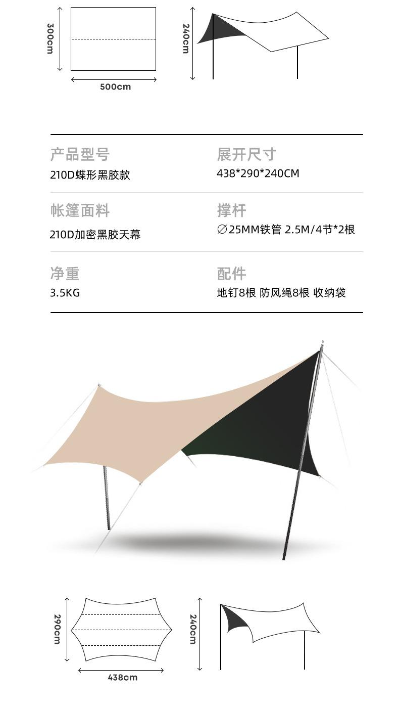 Toldo hexagonal de tecido Oxford com cola preta para proteção solar para acampamento ao ar livre, piquenique, à prova de chuva, portátil