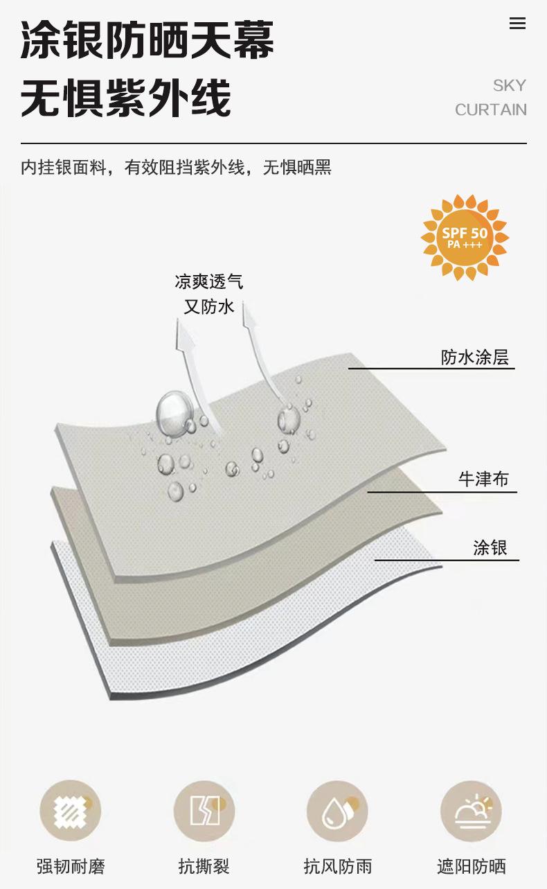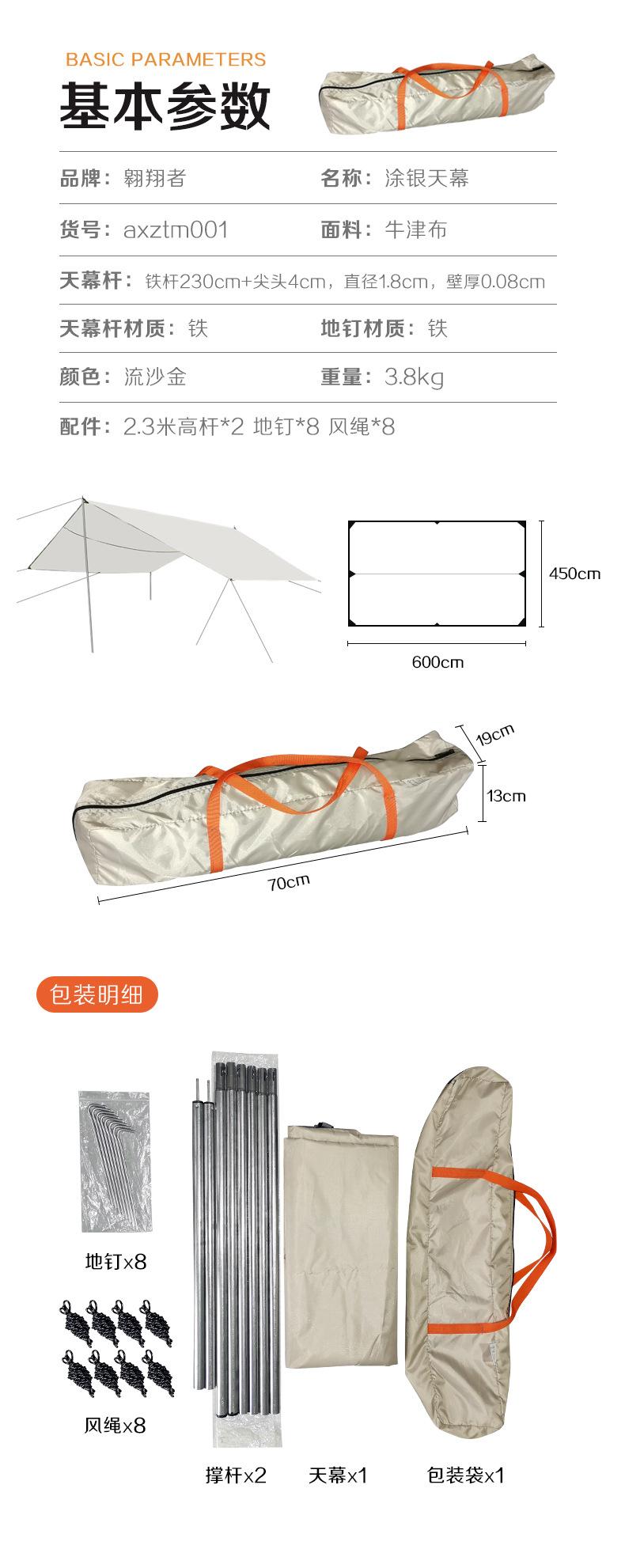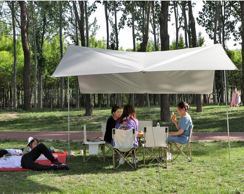 Toldo de Borracha Preta Protetor Solar para Acampamento ao Ar Livre, Toldo Grande de Tecido Oxford Impermeável para Acampamento, Tenda Toldo de Quatro Cantos