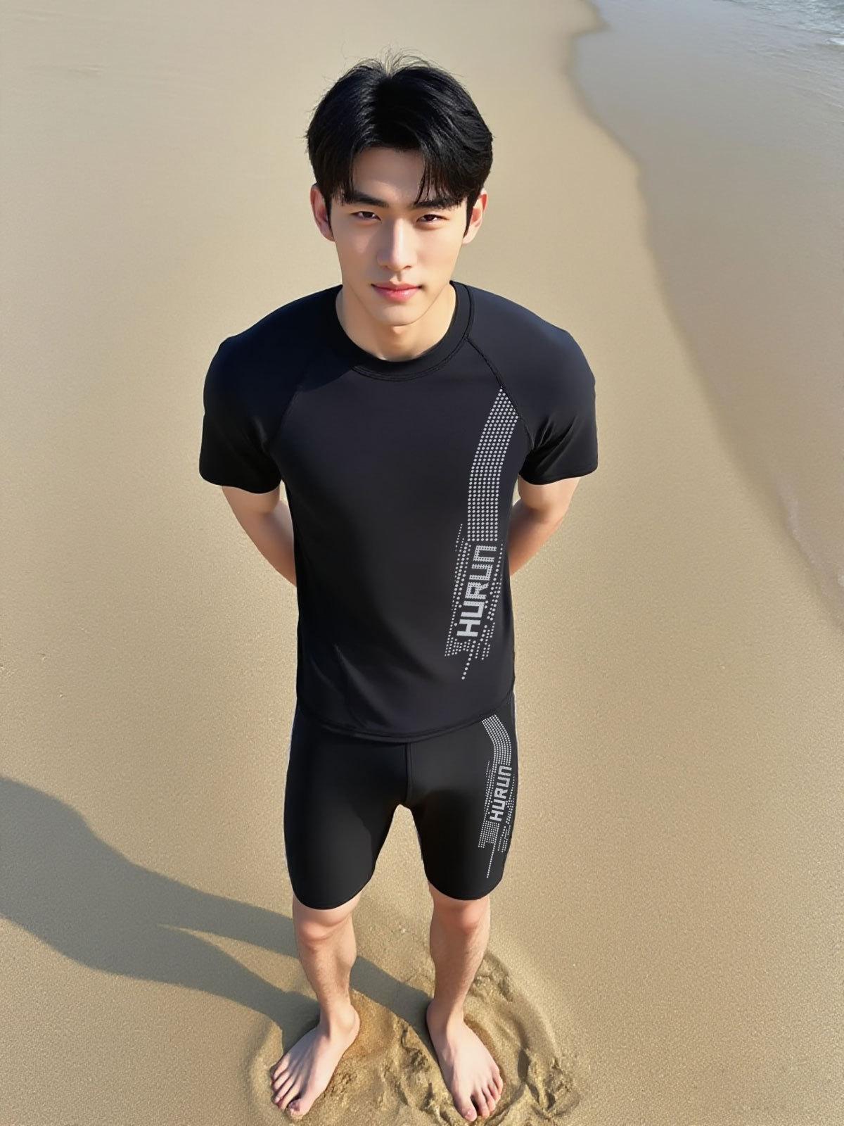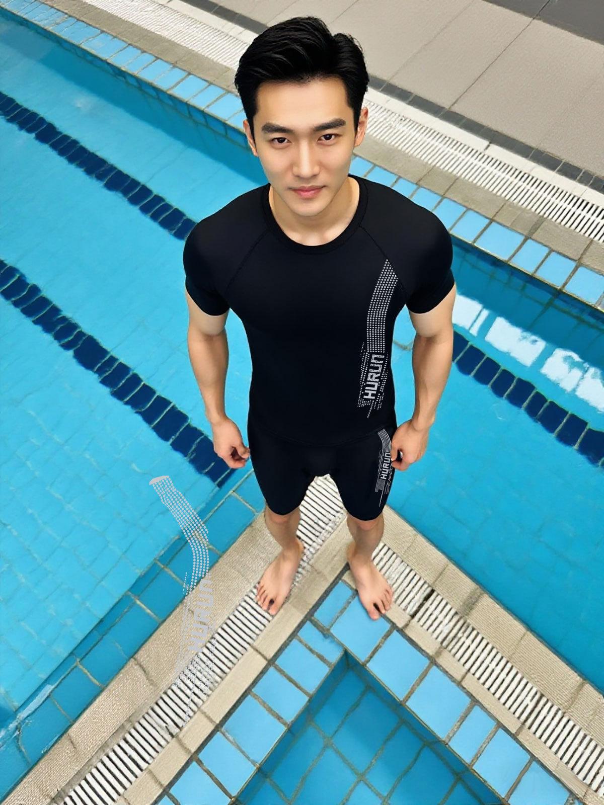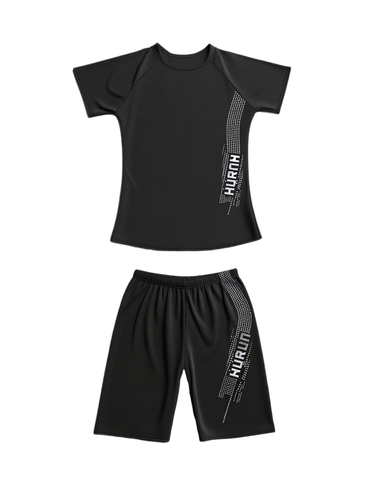 Fato de Banho Fato Masculino Adulto Fato de Banho Estampado de Manga Curta Masculino Dividido Novo Calção de Banho Longo Juvenil Tamanho Grande