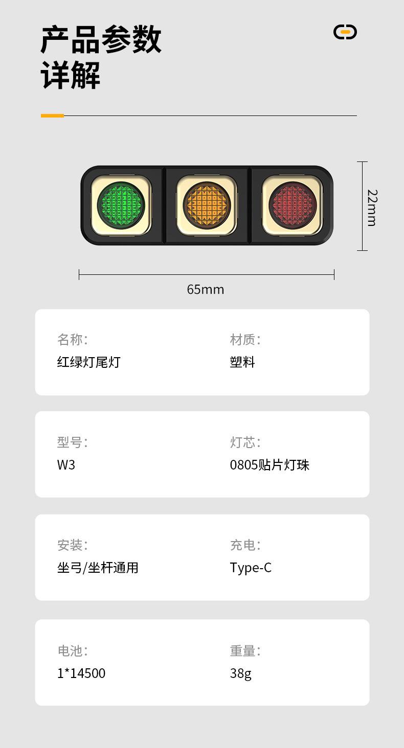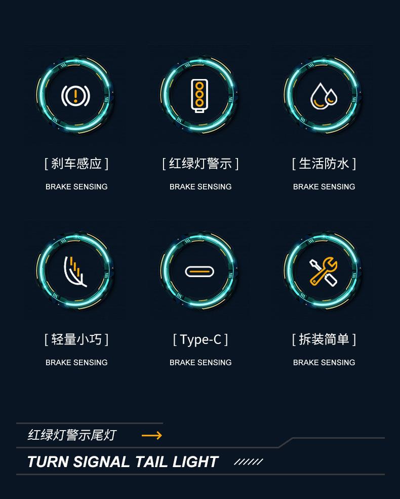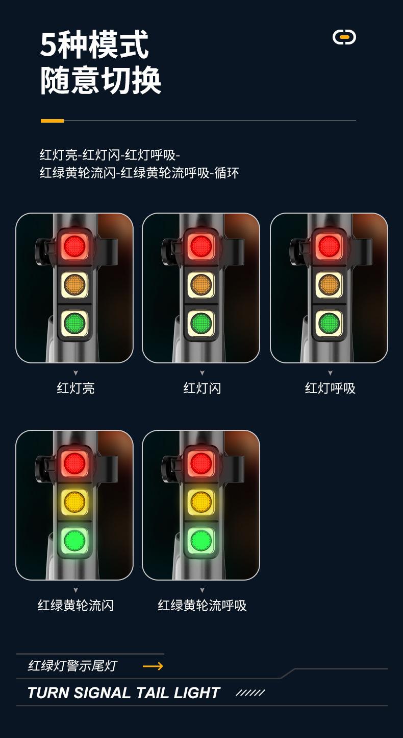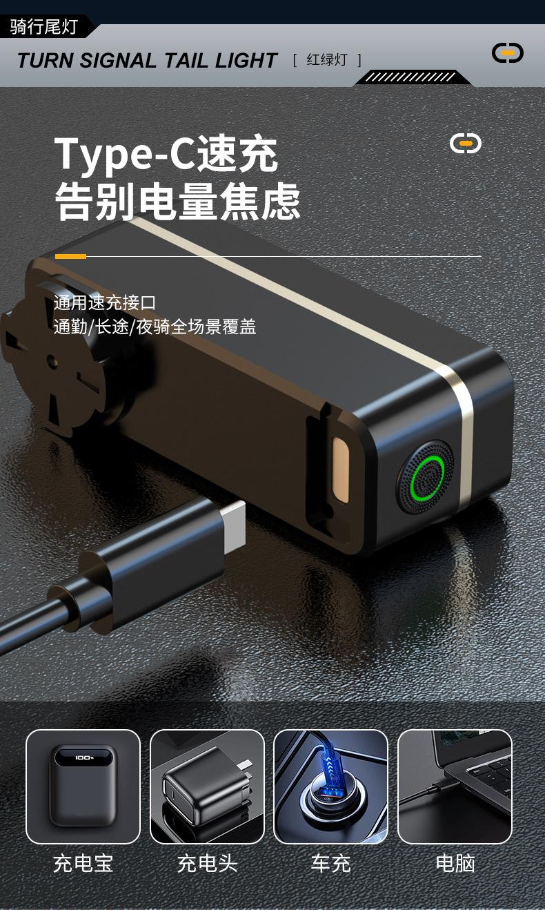 Luz Traseira de Bicicleta Luz de Ciclismo Noturno Luz de Advertência Noturna Tricolor Ponto de Carregamento USB Luz de Trânsito Luz Traseira Luz de Ciclismo de Montanha