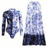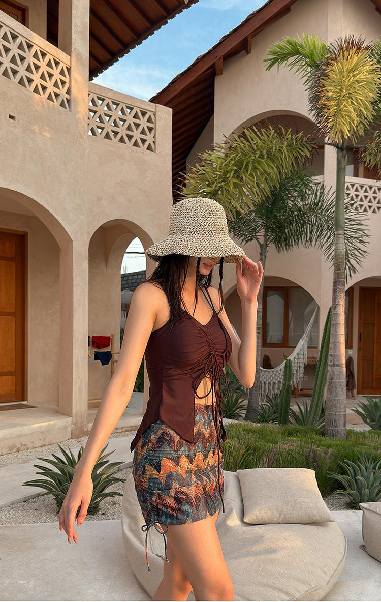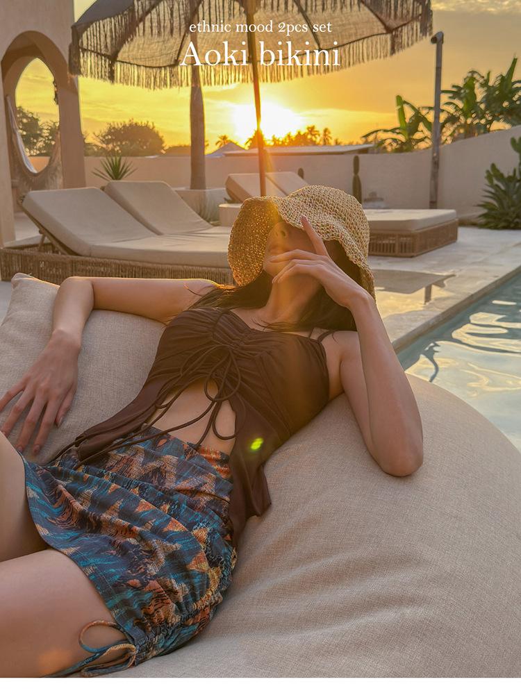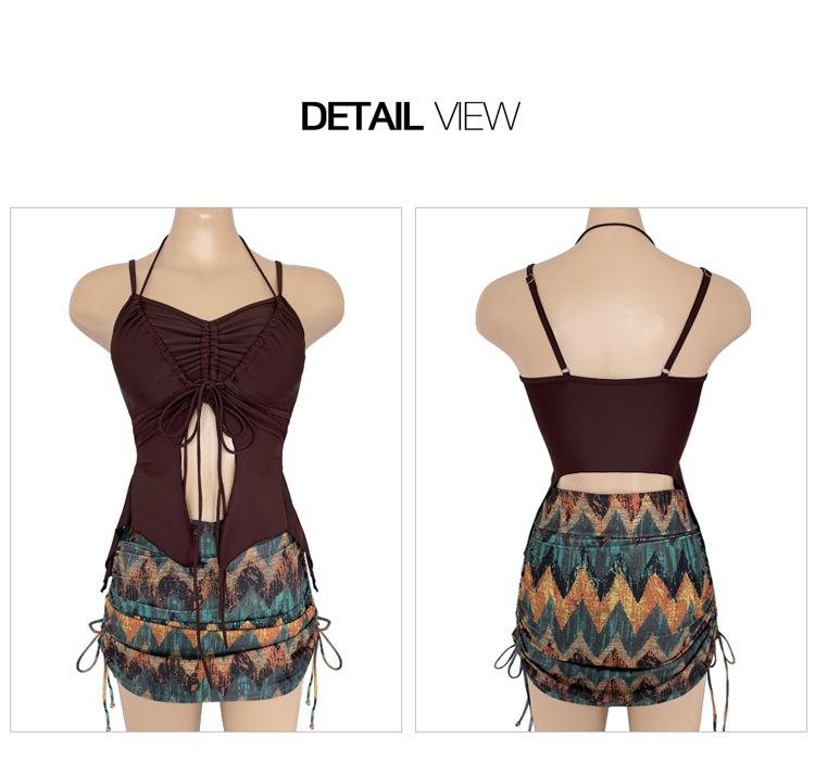 Estilo Boêmio Coreano Ins Roupa de Banho Feminina Três Peças Saia Conservadora Slim Dividida Casual Férias Roupa de Banho