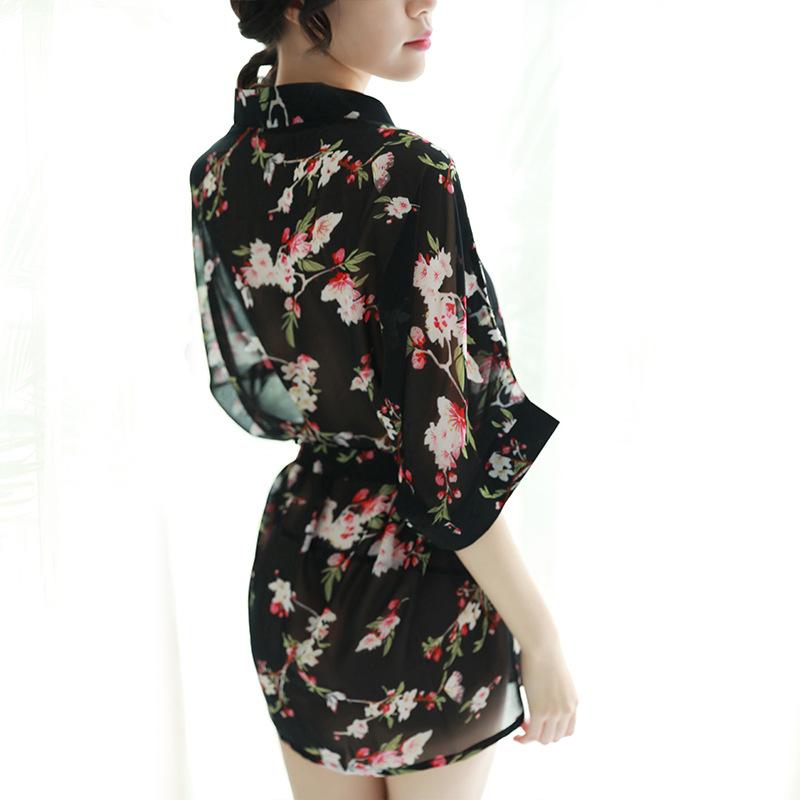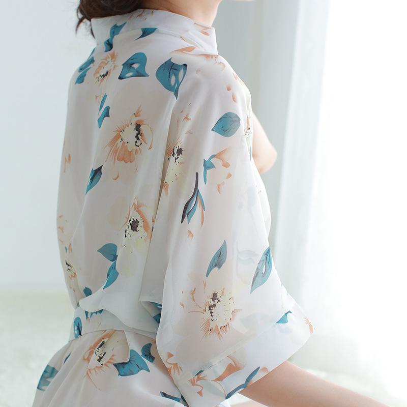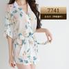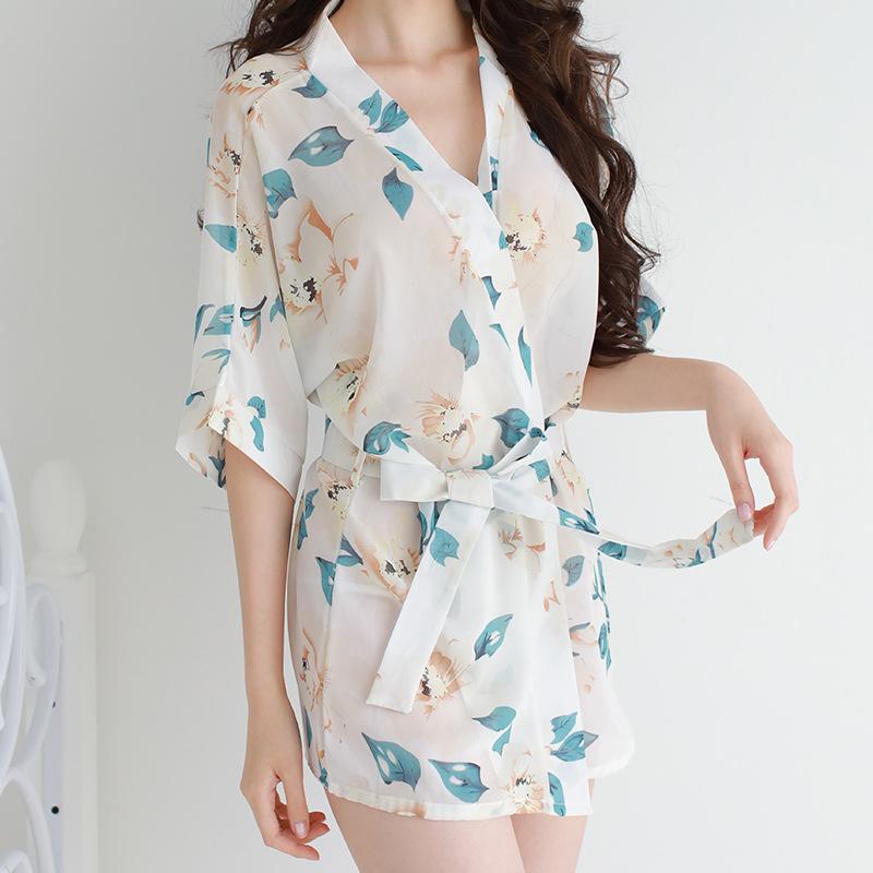 Roupa Íntima Sexy Europeia e Americana Uniforme Feminino Tentação Chiffon Estampado Camisola Sexy Conjunto de Pijama Sexy 7741