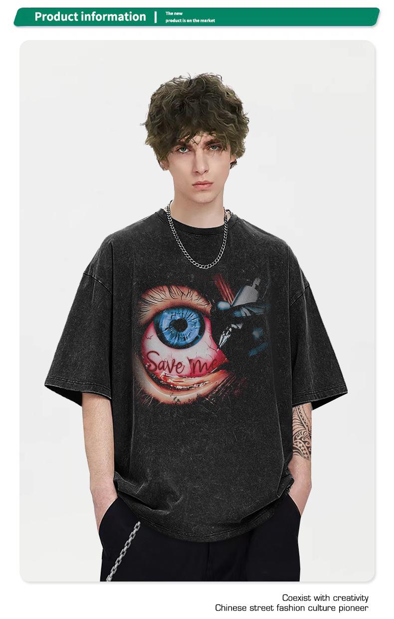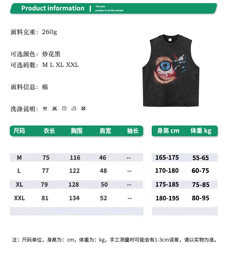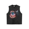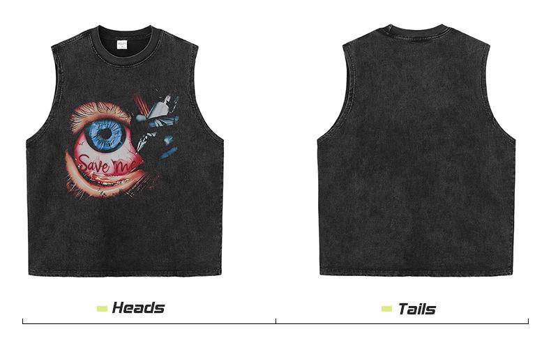 Marca da Moda de Rua Transfronteiriça Camiseta de Manga Curta Tendência de Rua Europeia e Americana Hip-Hop Estampada Lavada Desgastada Algodão Puro Regata Sem Mangas para Homens e Mulheres