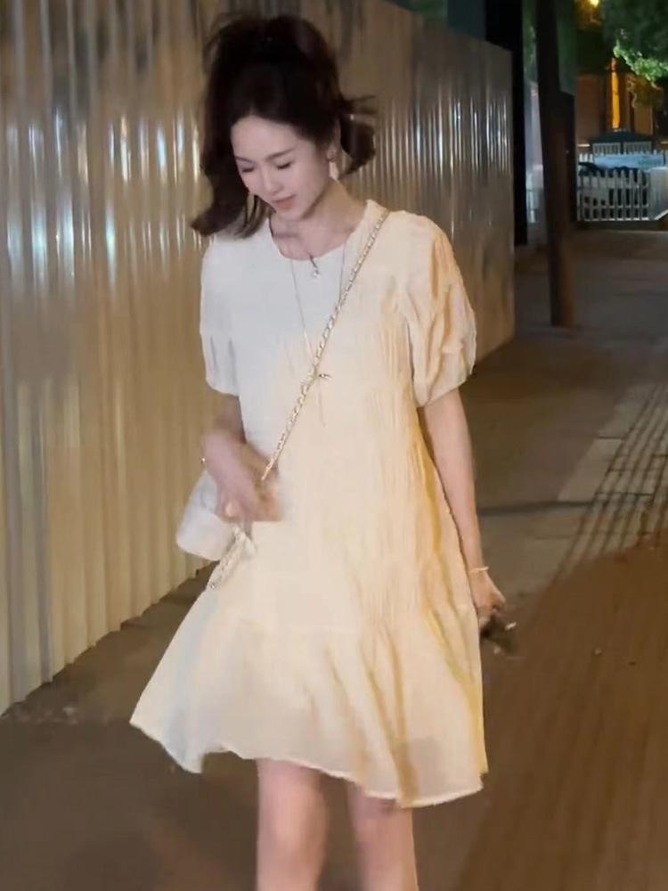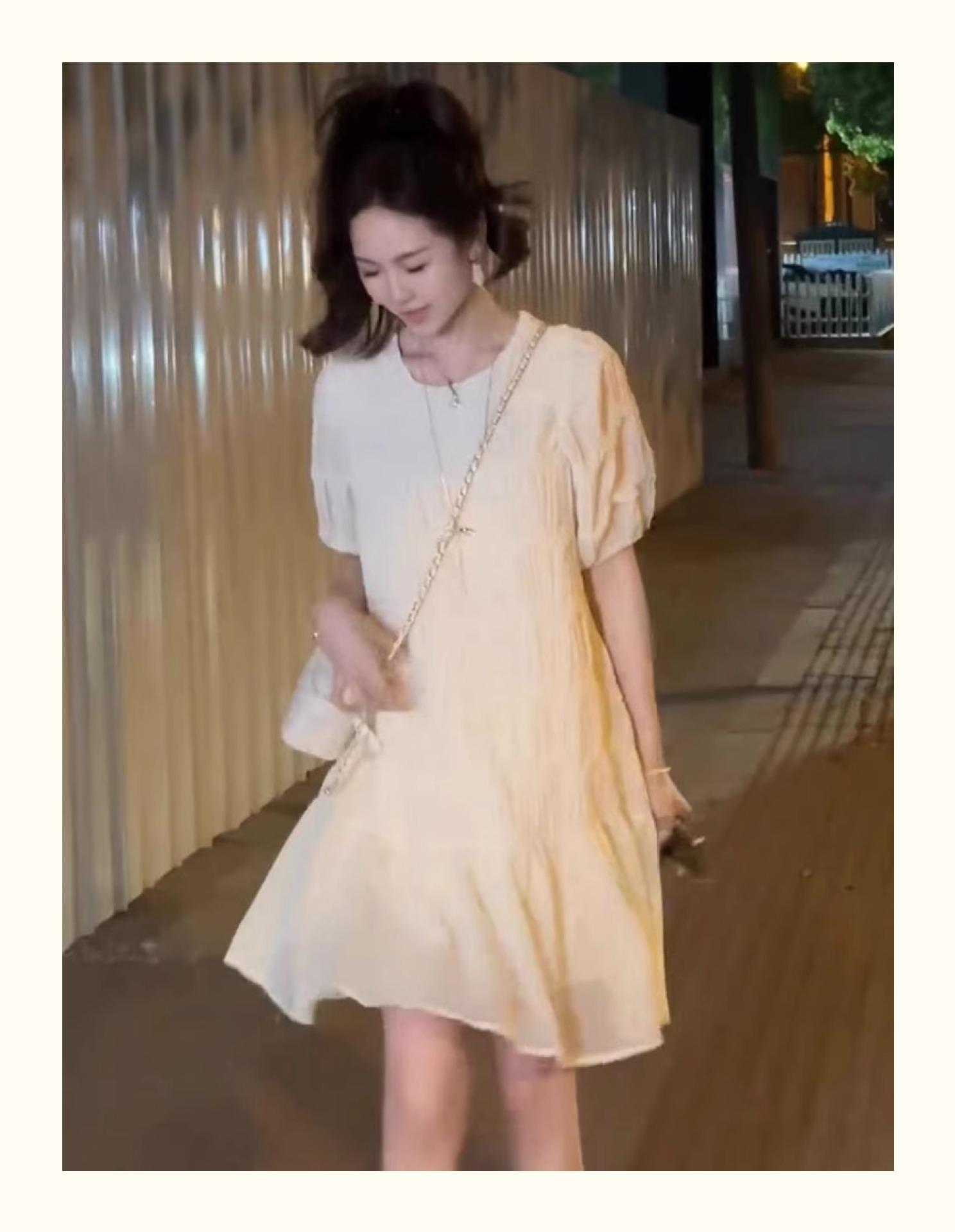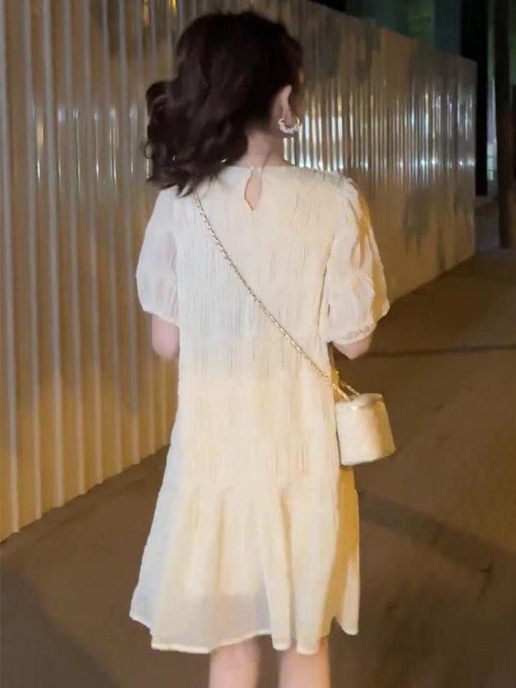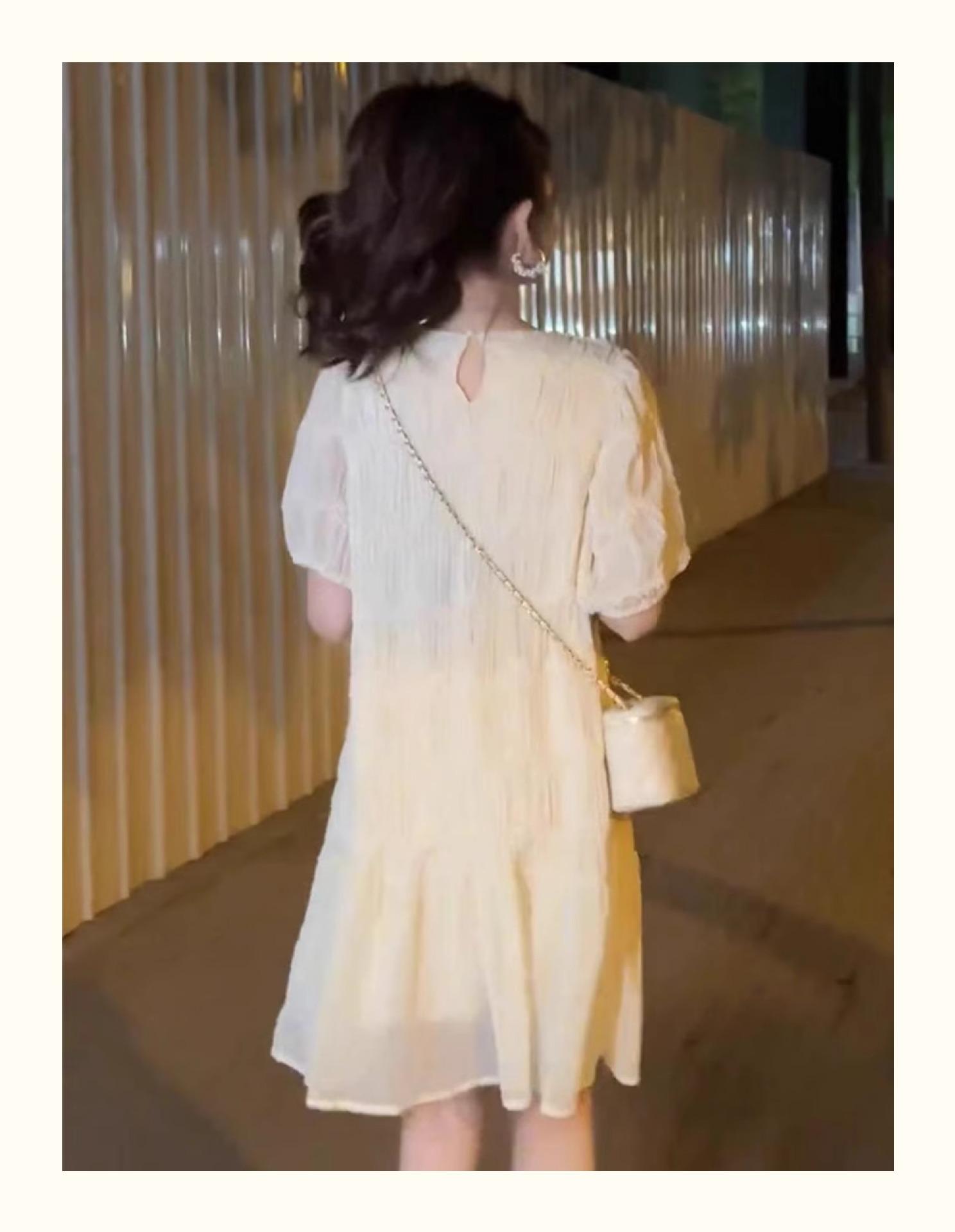 Vestido Francês Plissado de Manga Curta Feminino 2025 Verão Nova Chegada Elegante Moda Emagrecimento Super Fada Saia A-Line