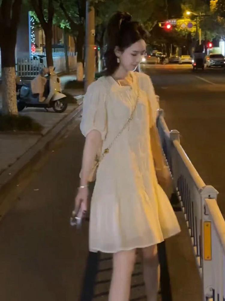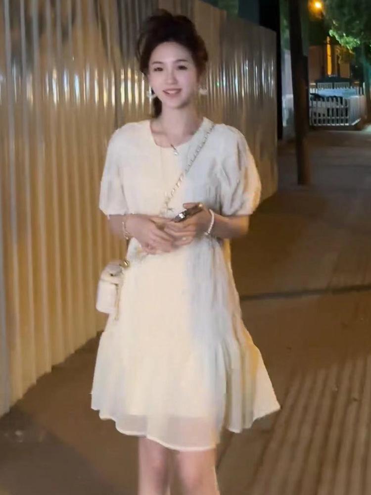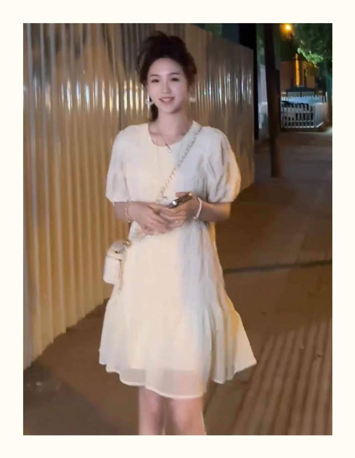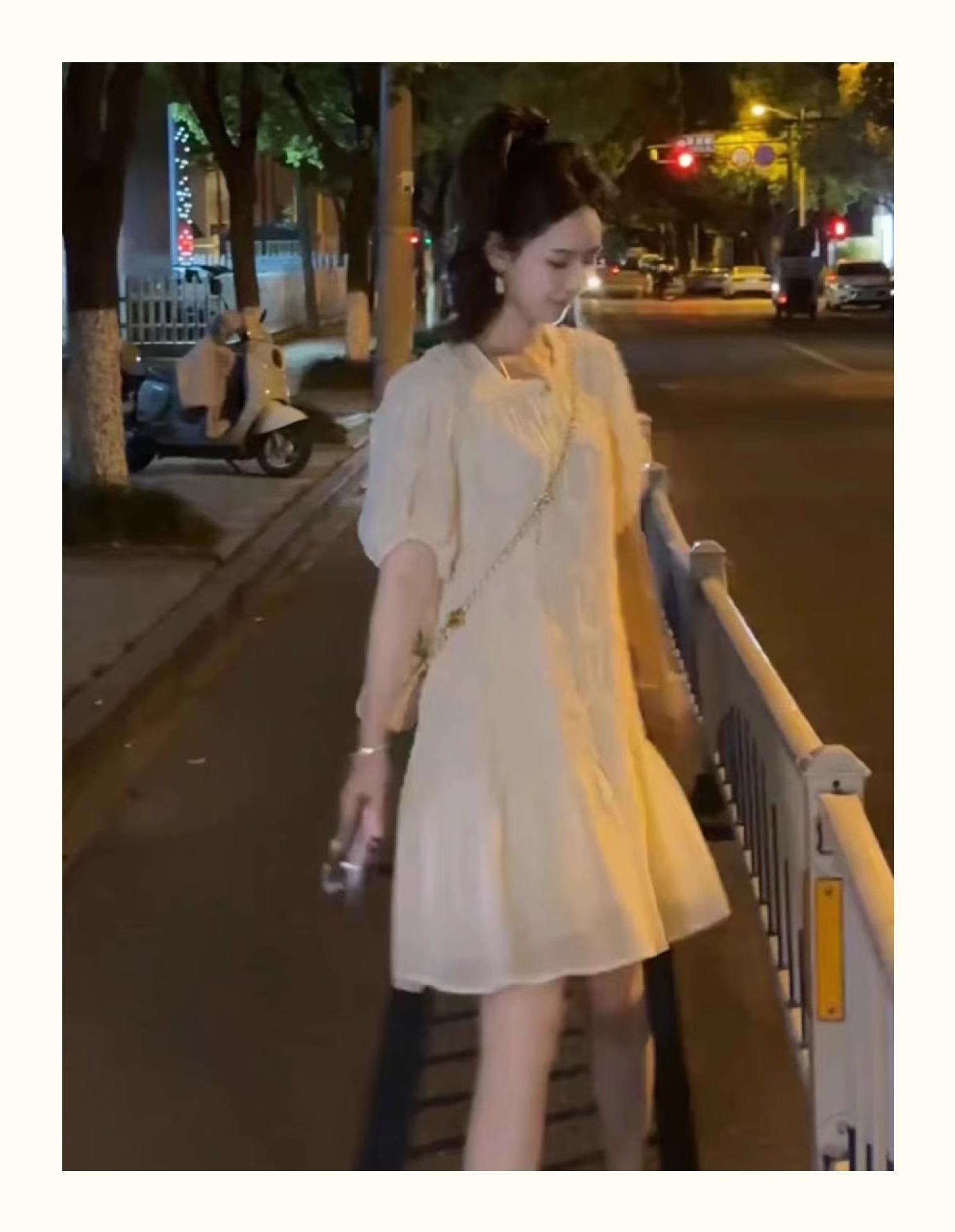 Vestido Francês Plissado de Manga Curta Feminino 2025 Verão Nova Chegada Elegante Moda Emagrecimento Super Fada Saia A-Line
