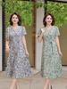 Vestido de Verão para Mães no Atacado Novo Vestido Decote V Manga Curta Vestido Requintado Estampado Slim de Comprimento Médio para Mulheres de Meia Idade Atacado