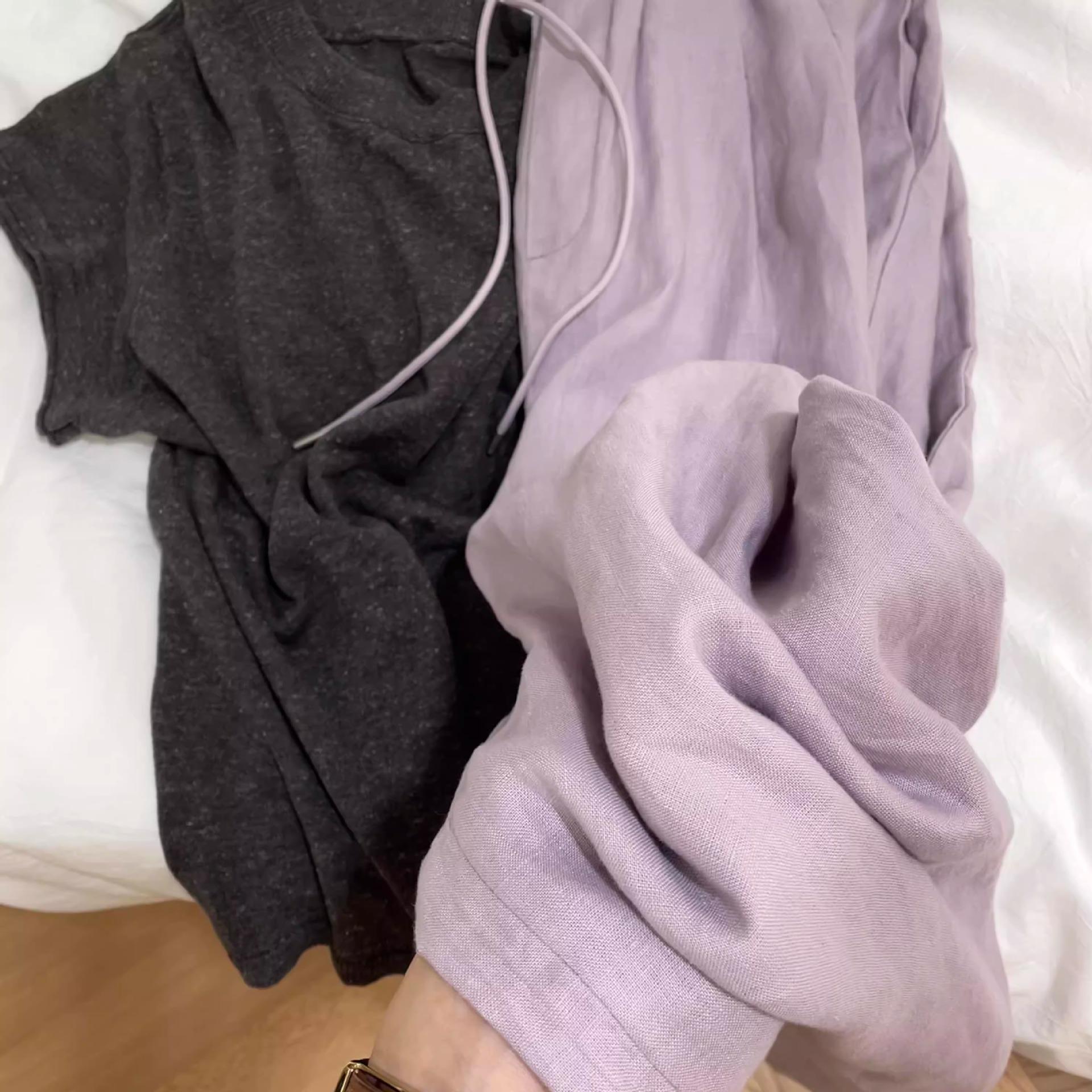 Calças Casuais de Linho de Verão de Perna Reta 2025 Novo Design Cintura Elástica Macia Calças Casuais Soltas para Mulheres