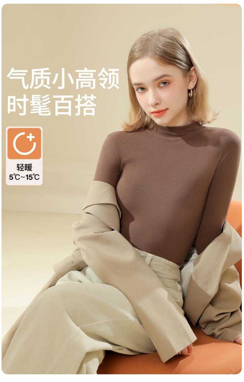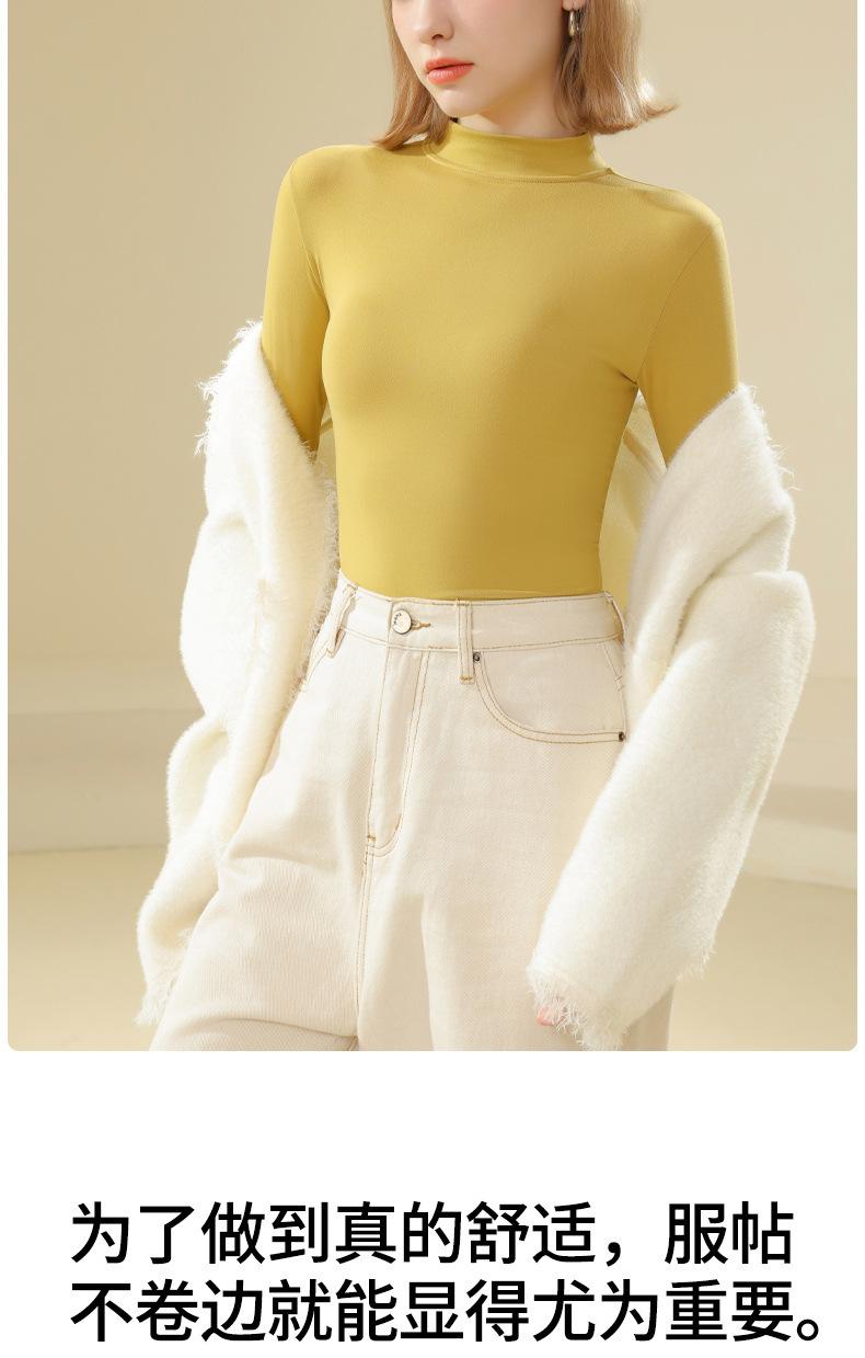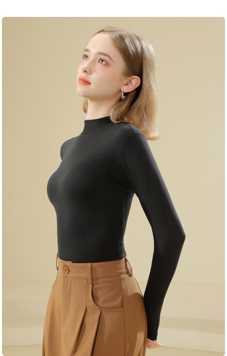 Blusa Básica de Tricô com Gola Alta para Mulheres Outono e Inverno 2025 Nova Estilo Básico Ajustada Elástica Gola com Pelúcia Interna