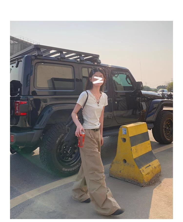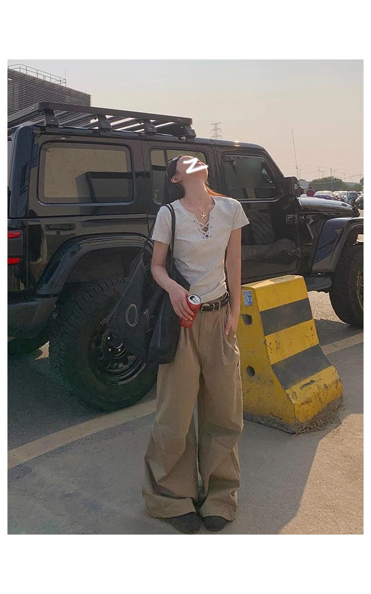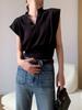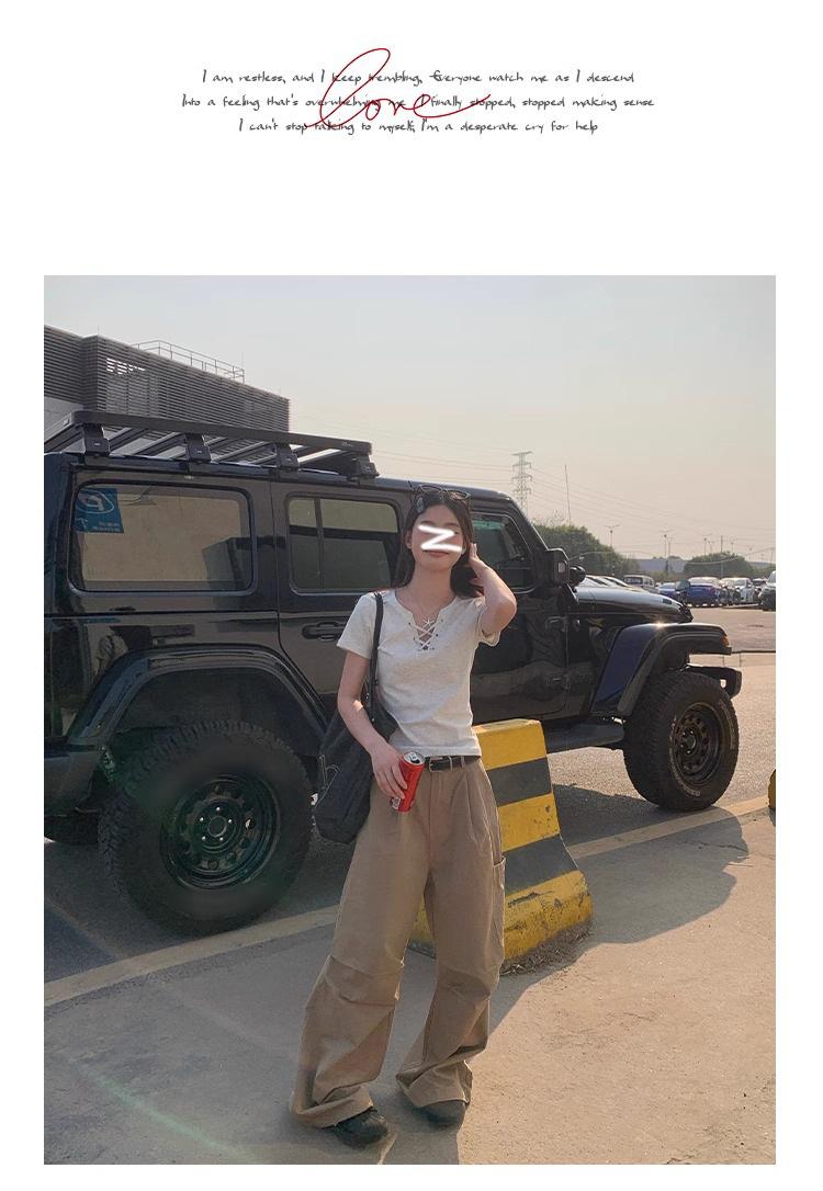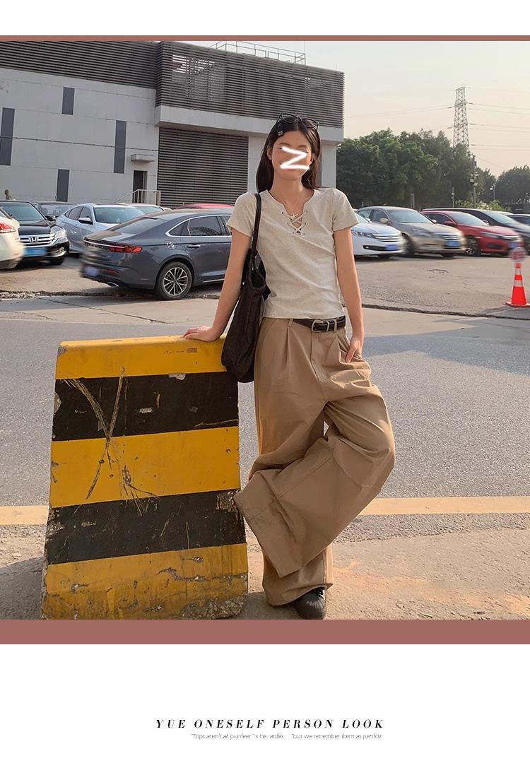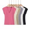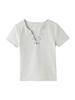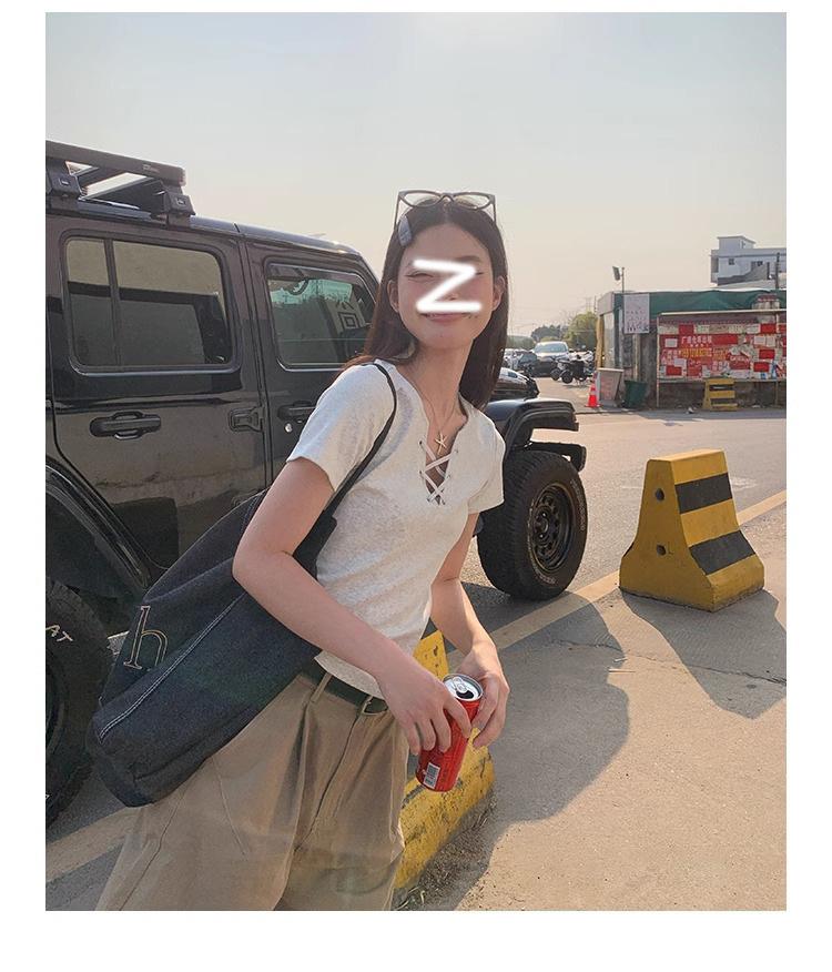 Camiseta Feminina de Manga Curta com Design de Alça Decote V High-End para o Verão Novo Estilo Ajuste Slim Doce e Picante Lindo Top com Aparência Emagrecedora