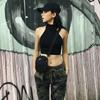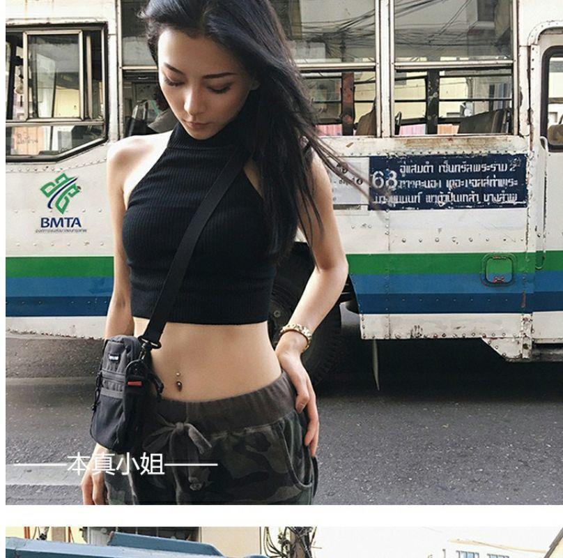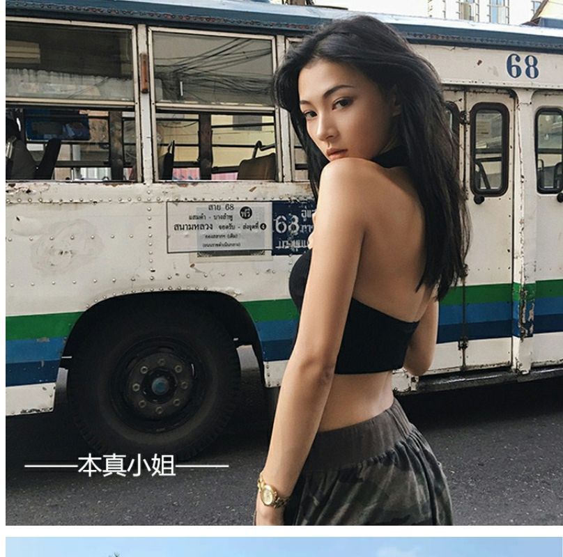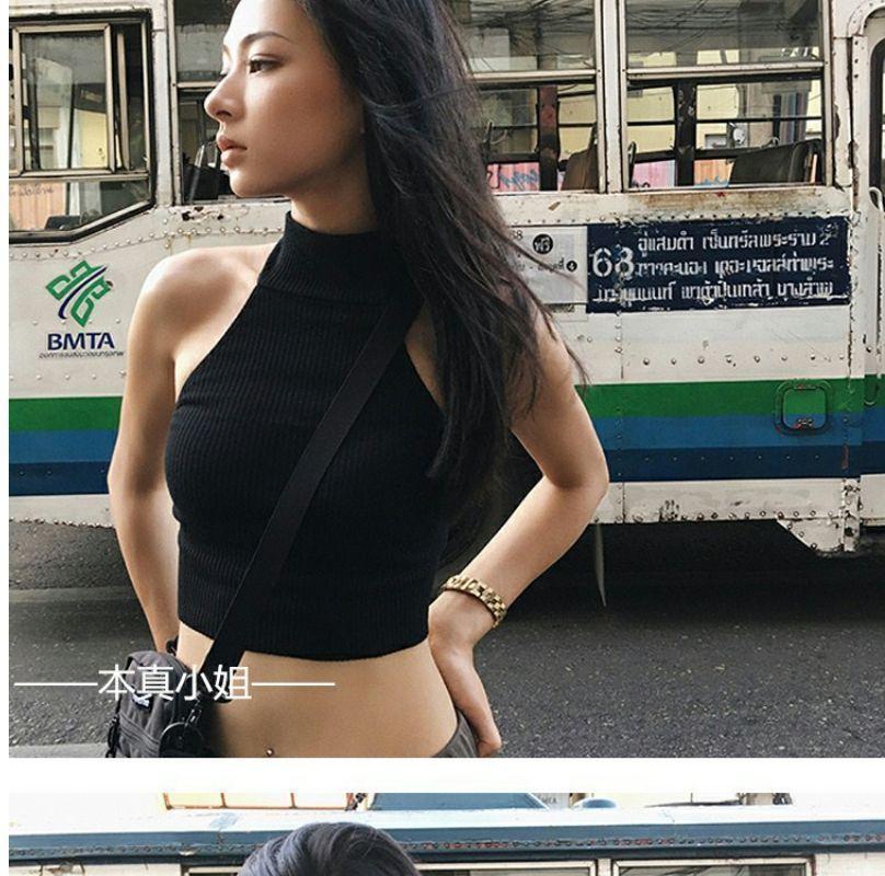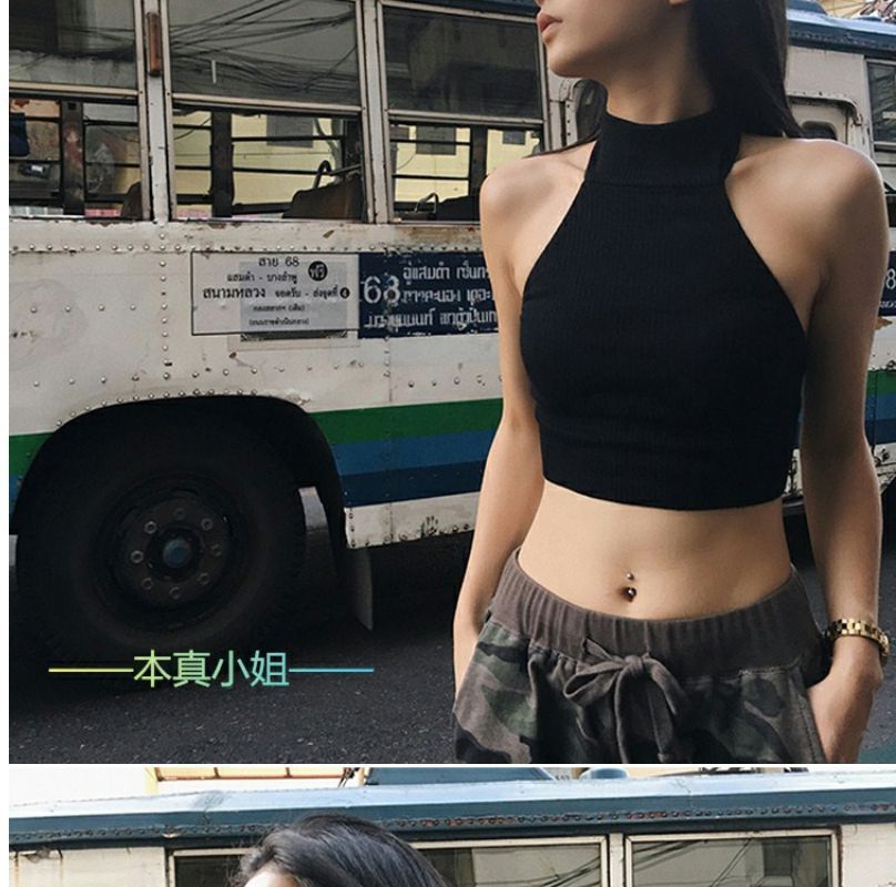 [Disponível para Personalização] Camisole Sexy Ombro a Ombro Gola Halter Verão Novo Estilo de Rua Emagrecedor Cropped Curto