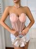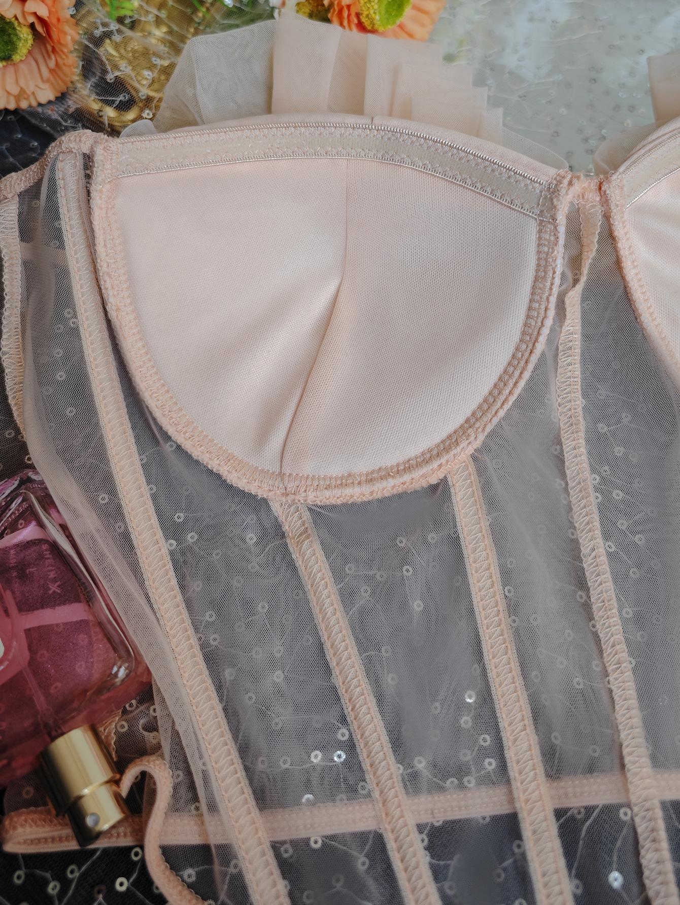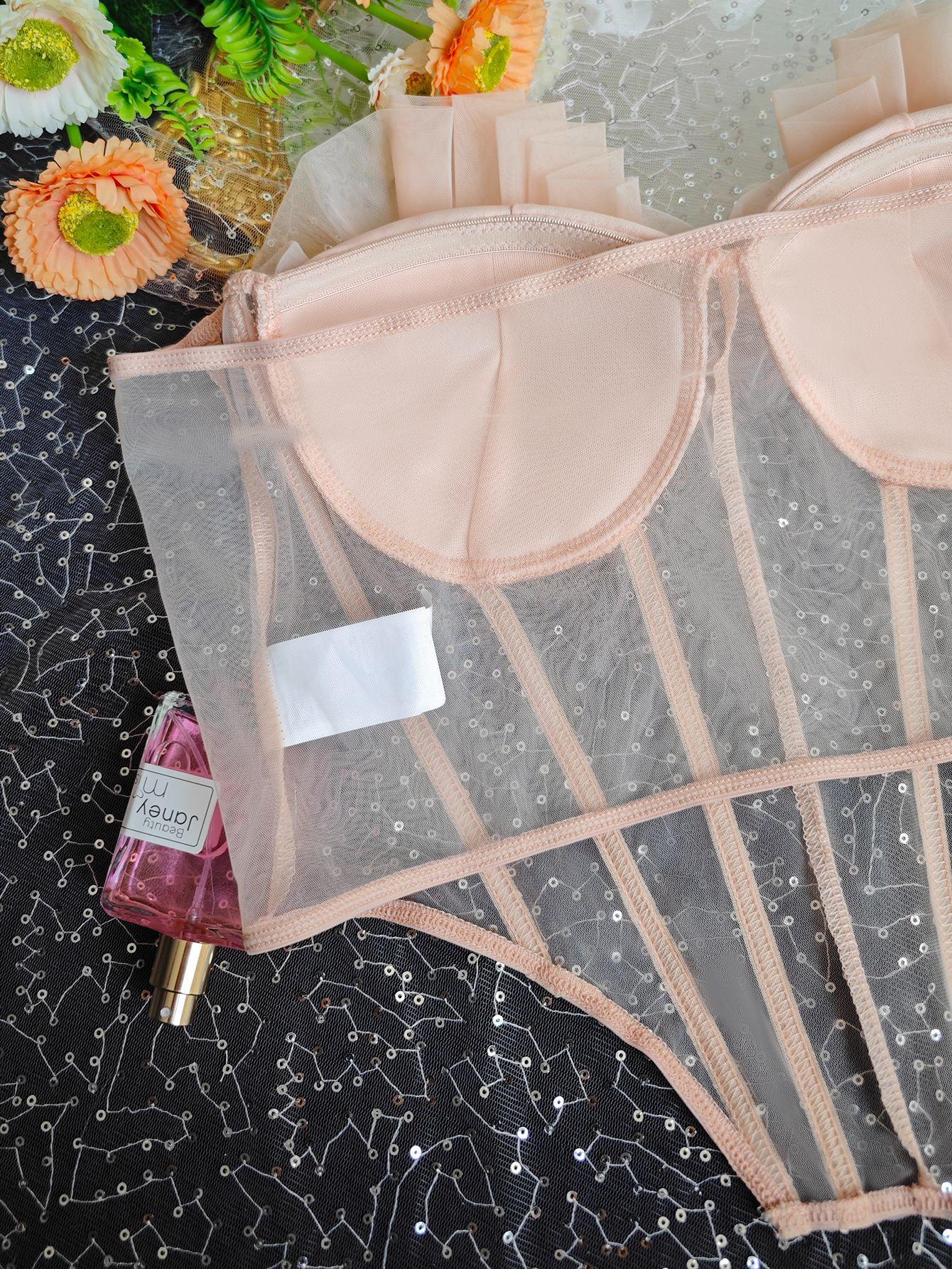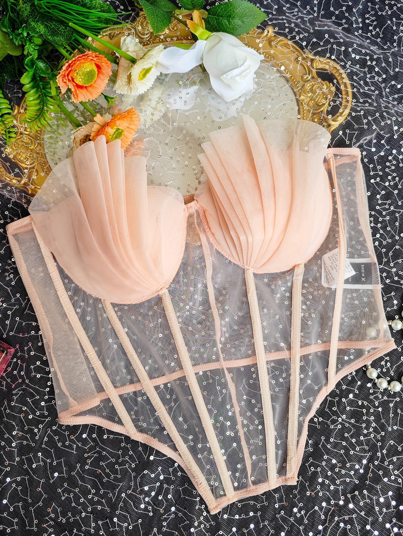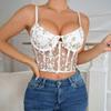 Sutiã Sexy Europeu e Americano Transfronteiriço Decote Baixo Barbatana de Peixe Desejo Puro Renda Transparente Losango Envolto no Peito Aro de Aço Corselete Colete
