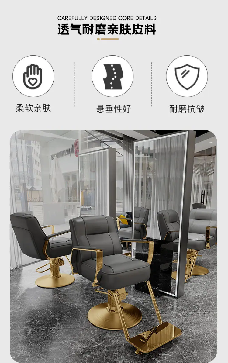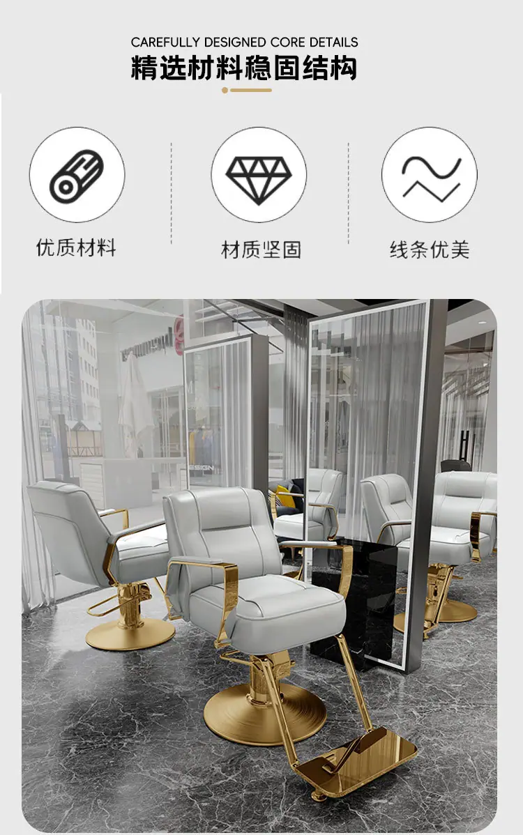 Cadeira de Barbeiro Loja Trendy Celebridade da Internet Cadeira de Barbeiro Giratória com Elevação para Corte de Cabelo e Tingimento de Permanente Cadeira de Cabeleireiro de Luxo Leve para Salão de Cabeleireiro